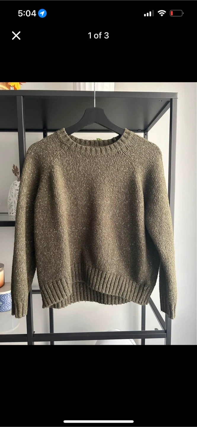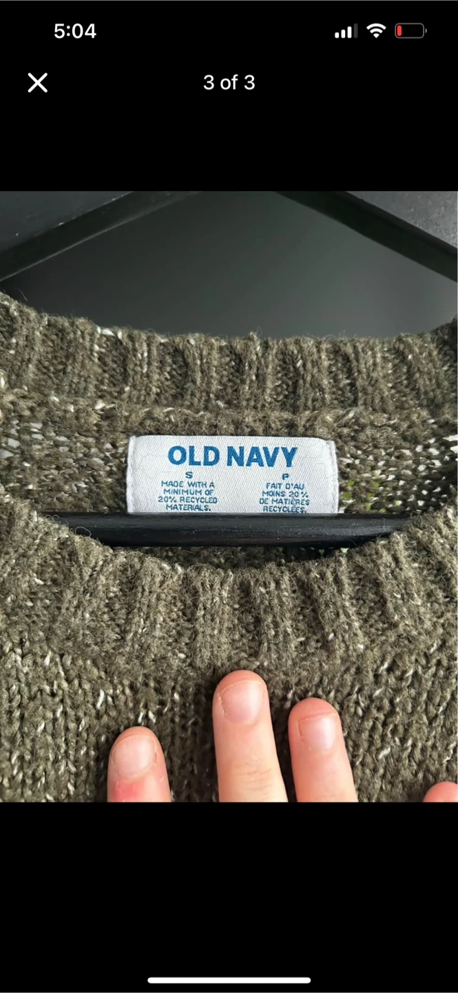 Cozy Old Navy sweater in a nice olive green colour! It's a size small and made with a mix of materials including 20% recycled materials. From a pet and smoke free home. Pickups only in University District