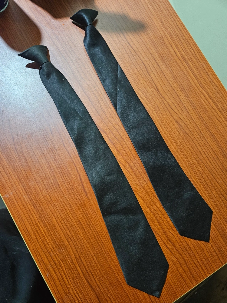 Selling two black clip-on ties. They're in great shape and ready to wear! Perfect for anyone needing a quick and easy tie solution