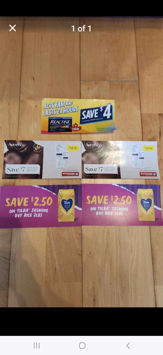 Reactive $4/ Aveeno Healing Ointment $7/ Tilda Jasmine Rice $2.5 Off Coupons Expiry Date 12/31/2025 Pick up at Downtown Toronto, other locations negotiable