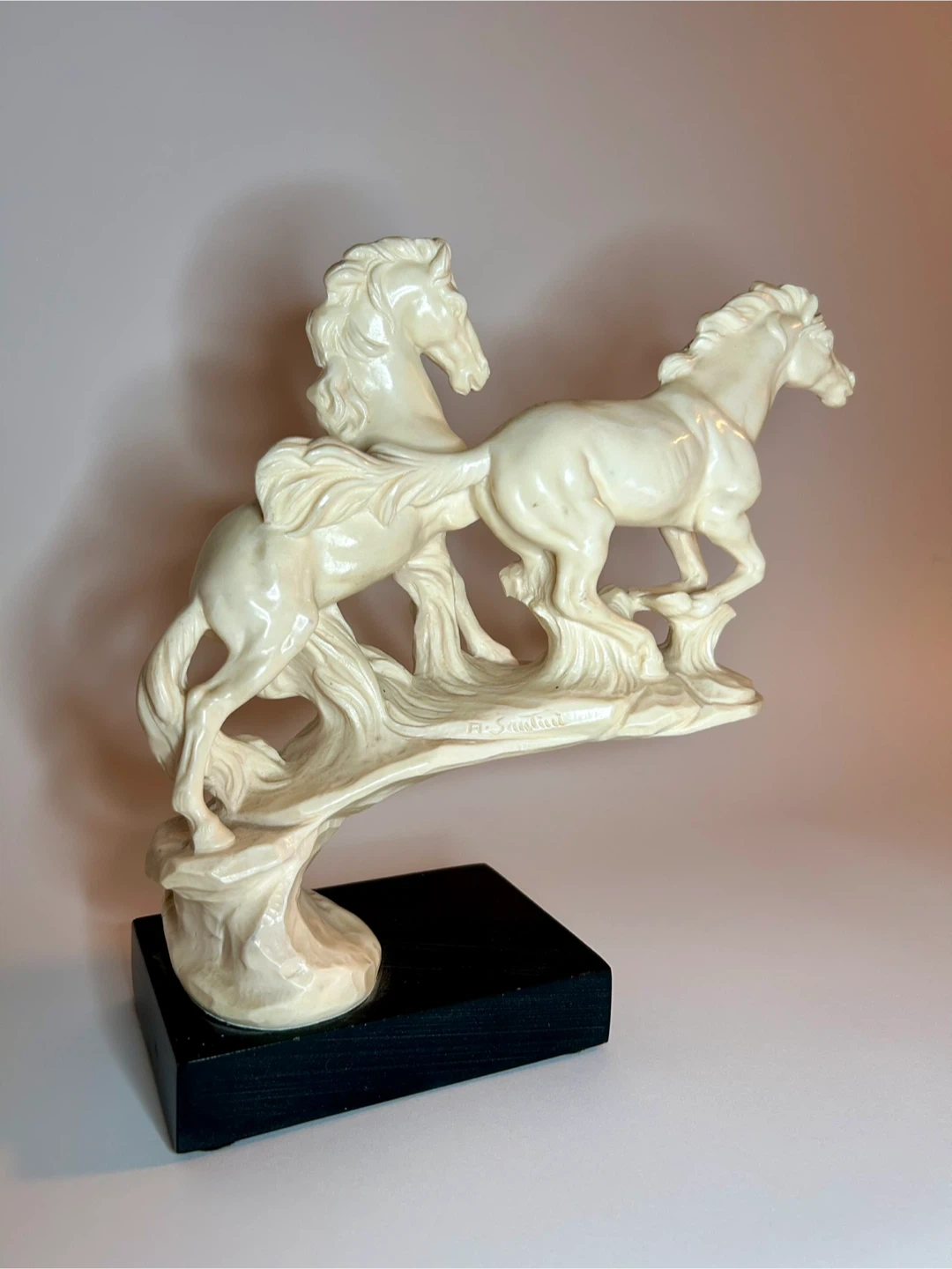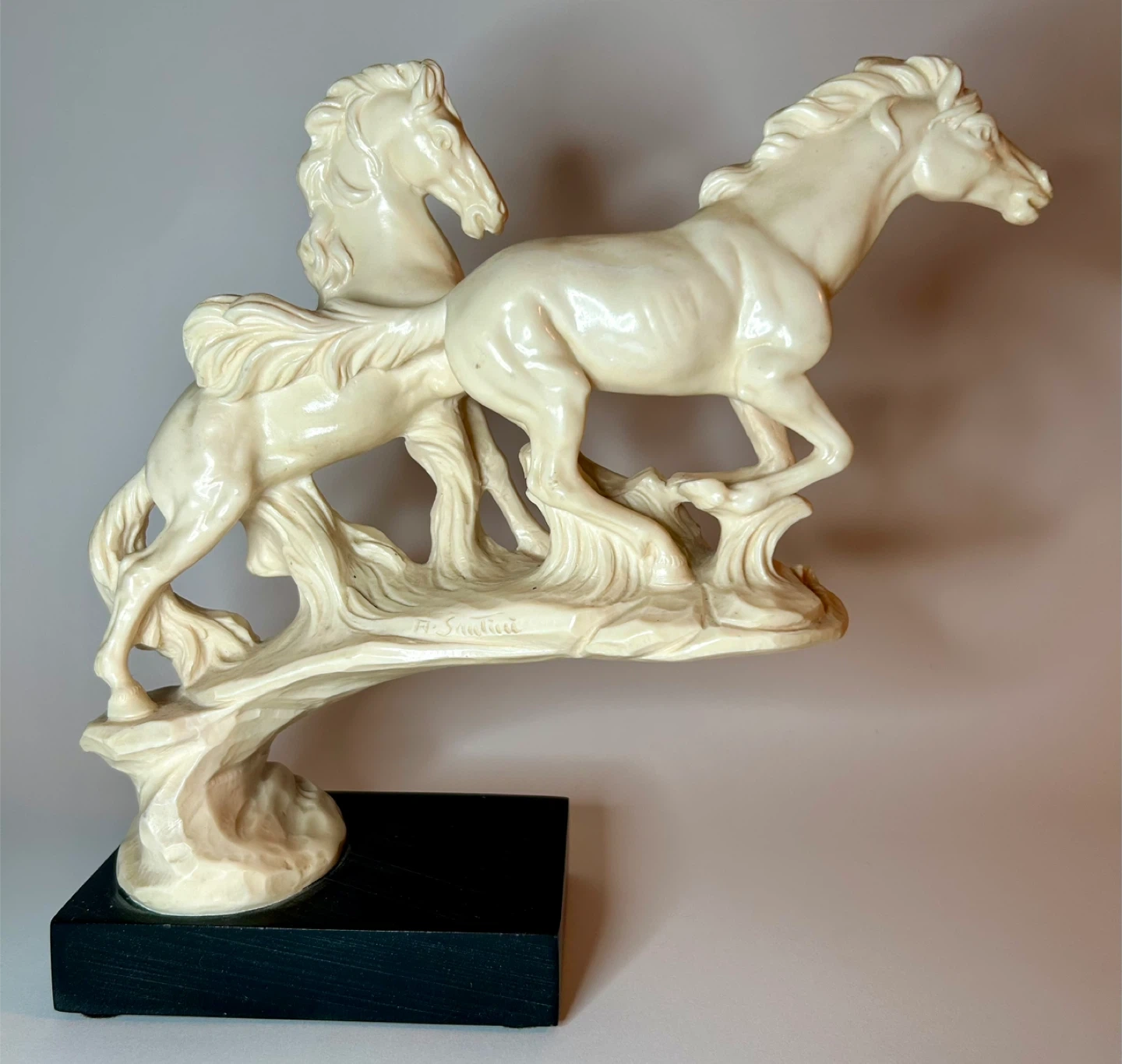 Beautiful sculpture of two horses by F. Santini. It's in great shape and would look lovely in any home 310 25th st w