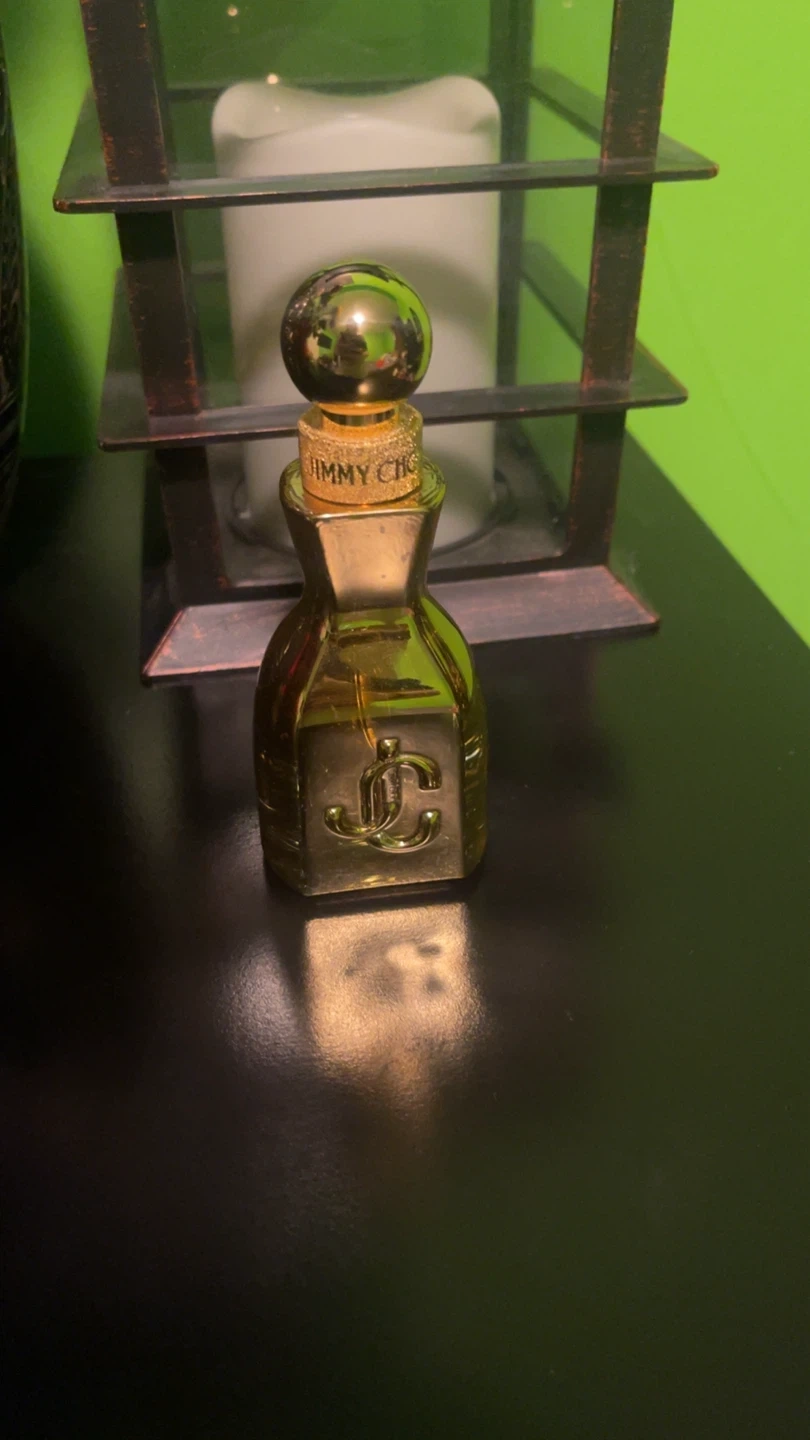 Selling a Jimmy Choo perfume bottle! It has a gold cap and the brand's logo on the front. It's a lovely addition to any collection