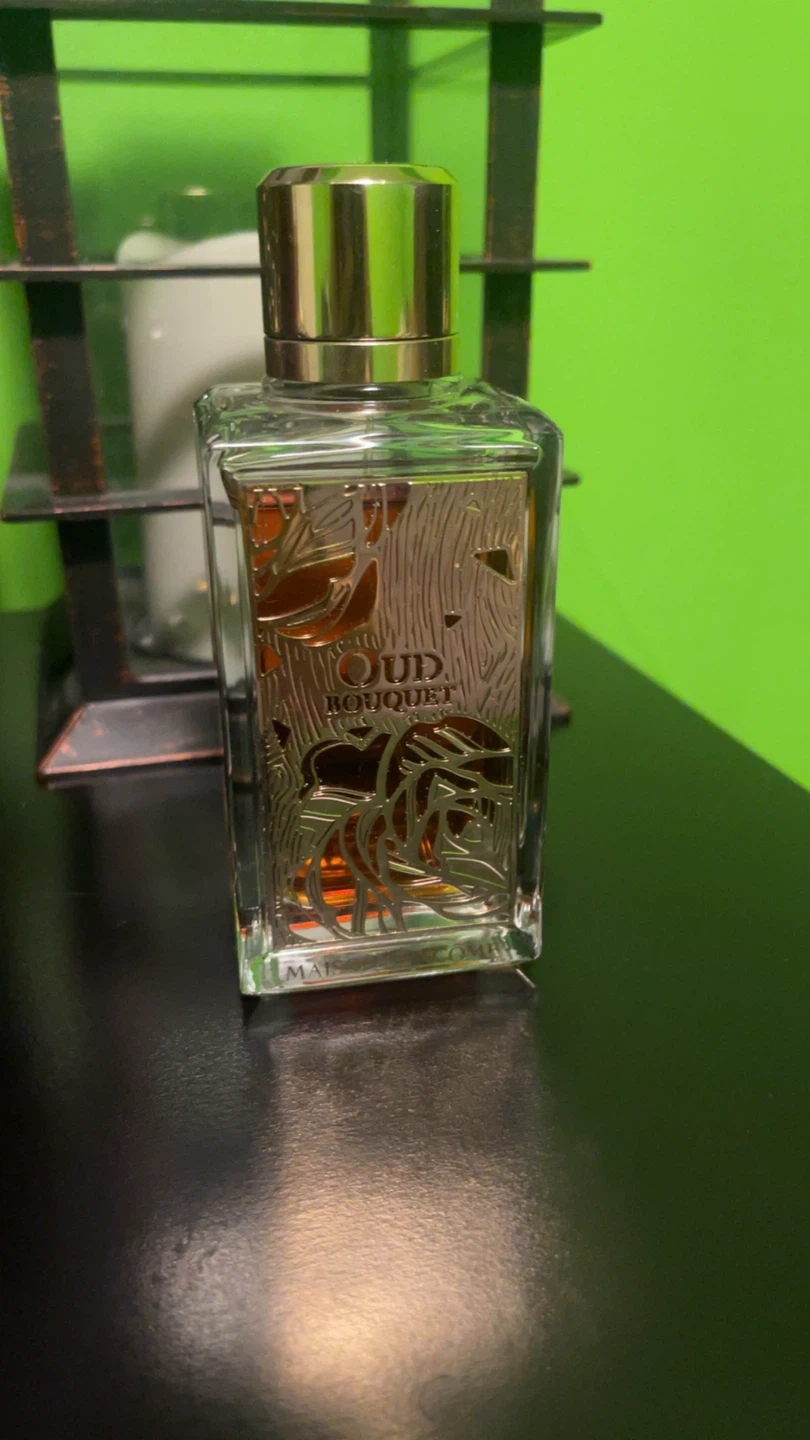 Selling a bottle of Oud Bouquet perfume. The bottle has a beautiful design with gold accents. It's in great condition and ready to find a new home! Oud and rose perfume Full bottle been sprayed a few times :)