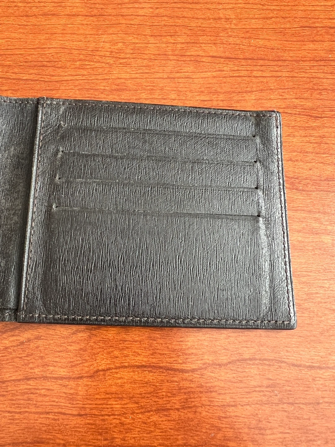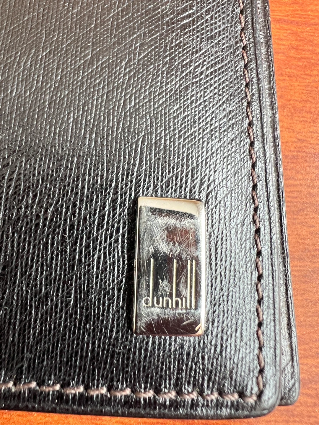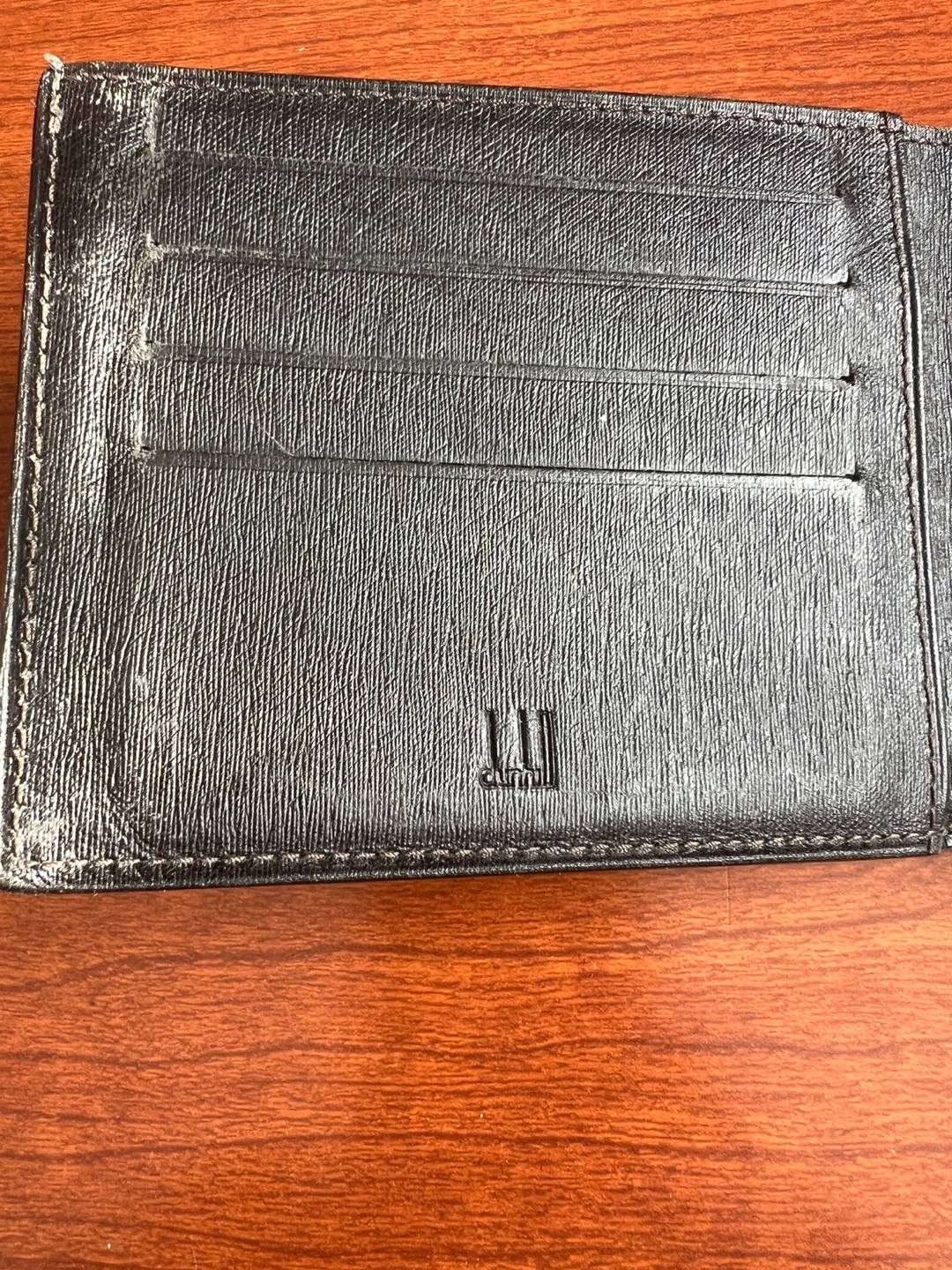 Selling a gently used Dunhill wallet. It's a classic black leather bifold style with the Dunhill logo. It has some signs of wear, but still has lots of life left!