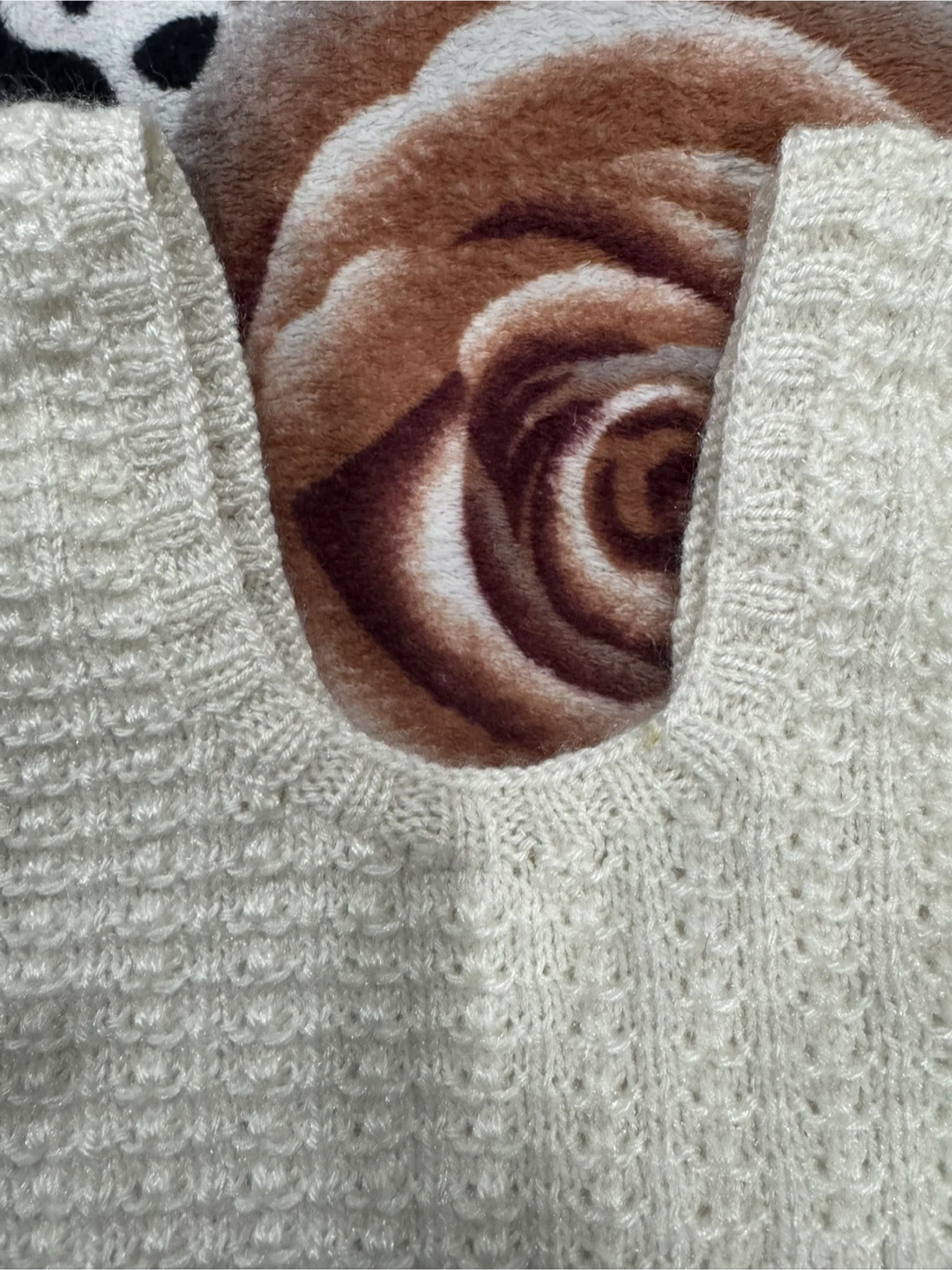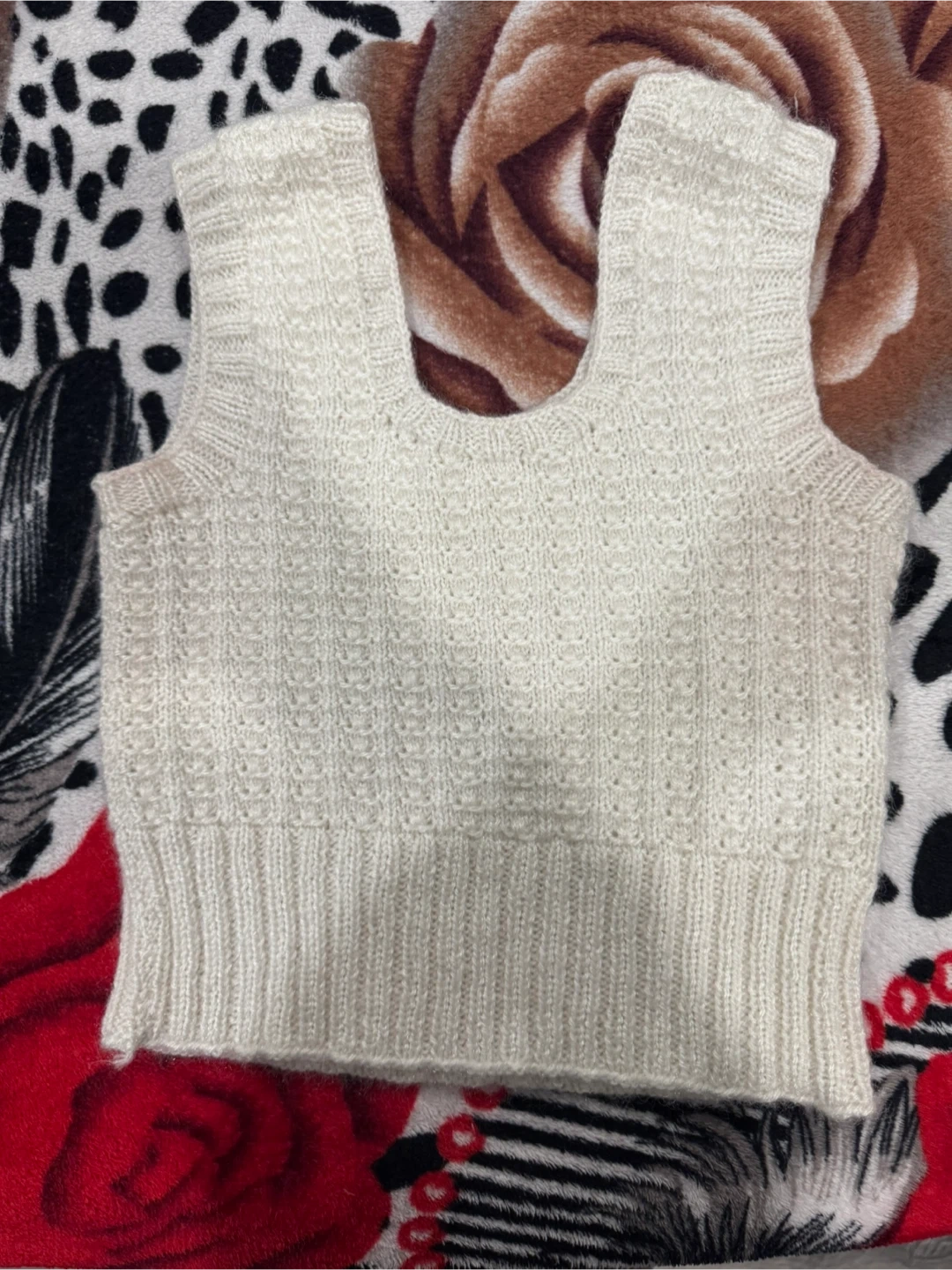 A cute cream-coloured knit top, perfect for layering or wearing on its own! It's in great condition and has a lovely textured pattern