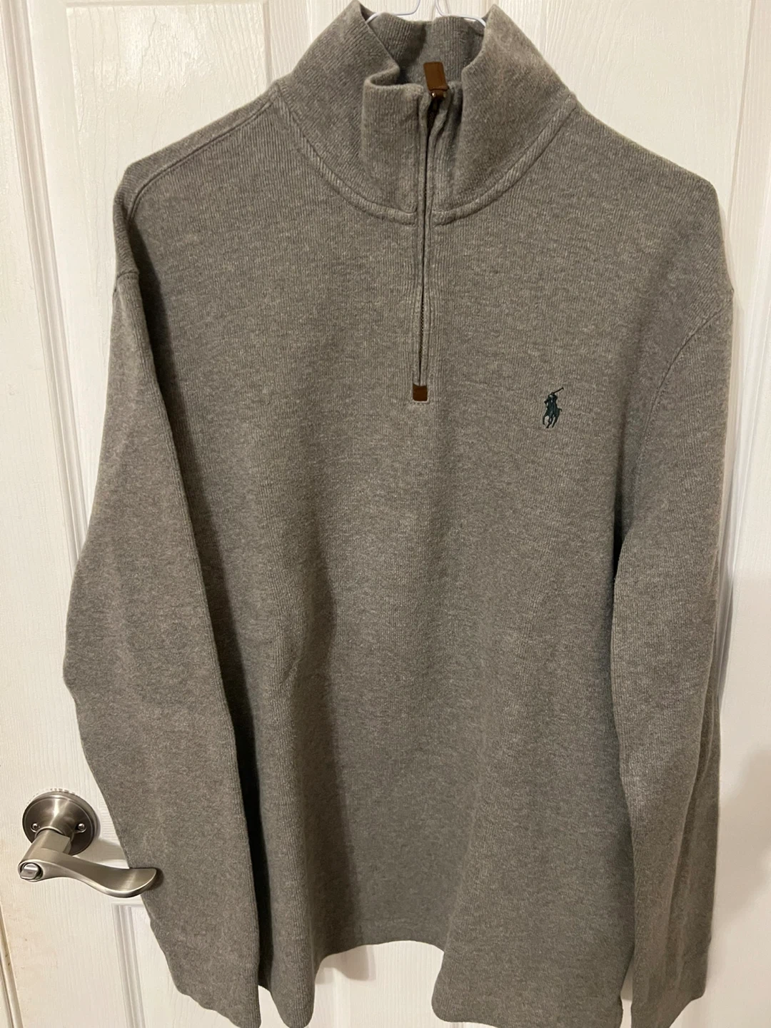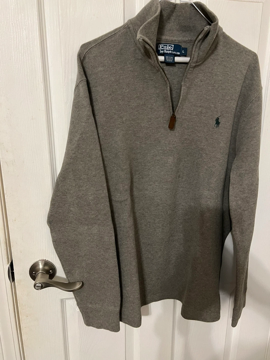 Selling a Polo by Ralph Lauren quarter-zip sweater in size large. It's a classic and comfortable piece, perfect for layering! The sweater is in great condition and features the iconic Polo logo. Made of 100% cotton!
