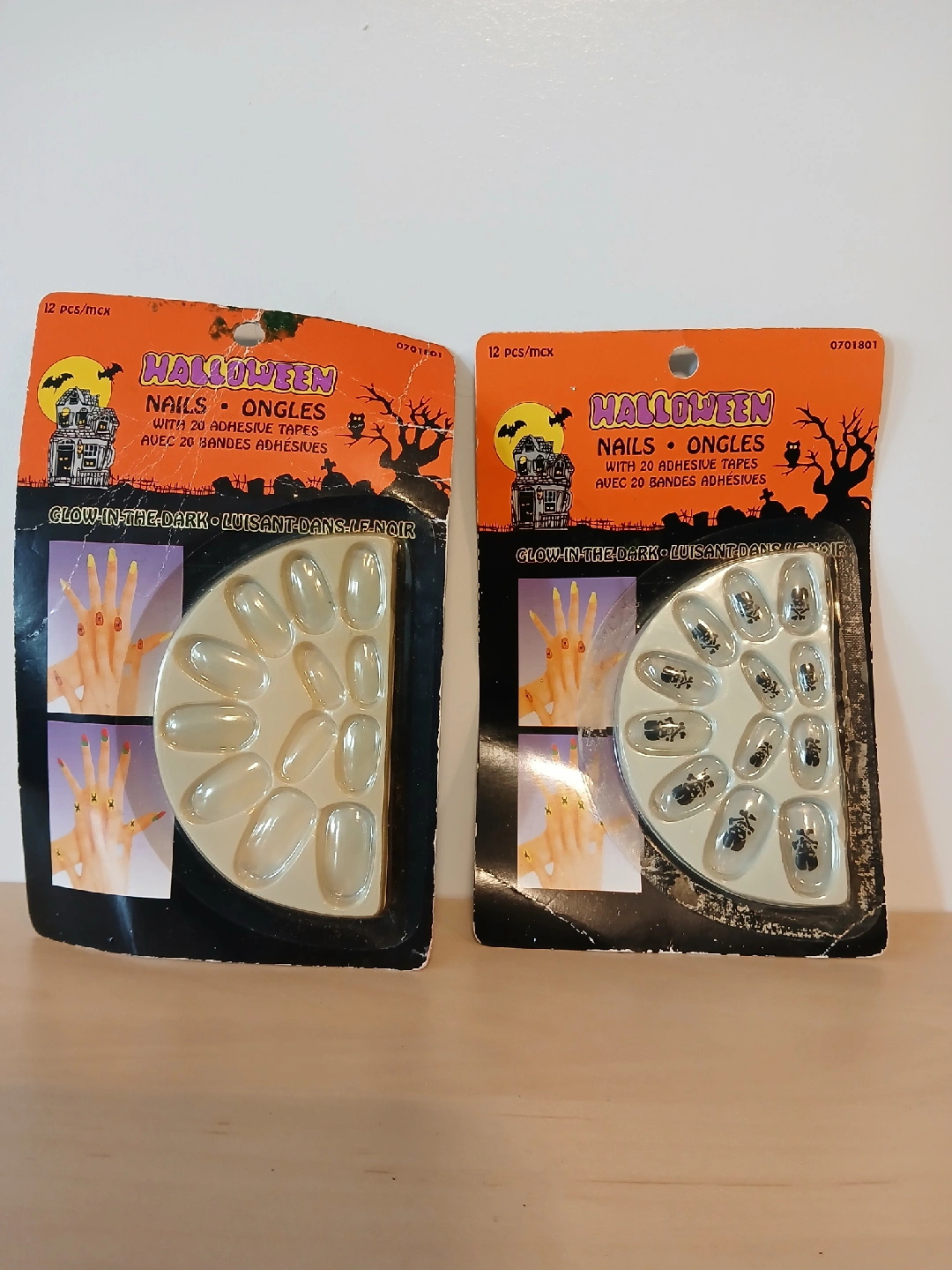 *Cash and pick up ONLY at location shown on ad. Selling two sets of Halloween nails that glow in the dark! Each set comes with 12 nails and 20 adhesive tapes. Perfect for a spooky Halloween look!