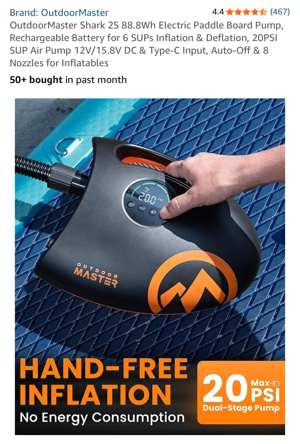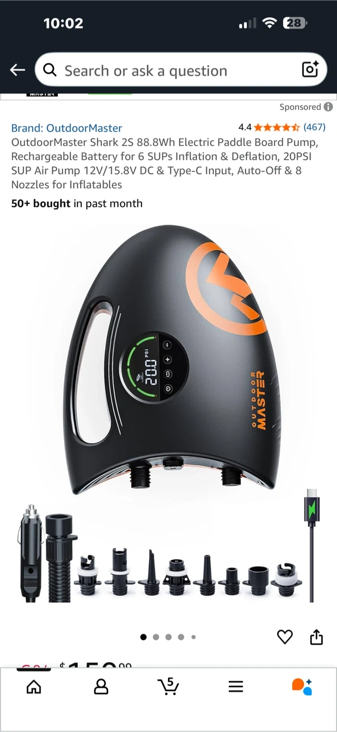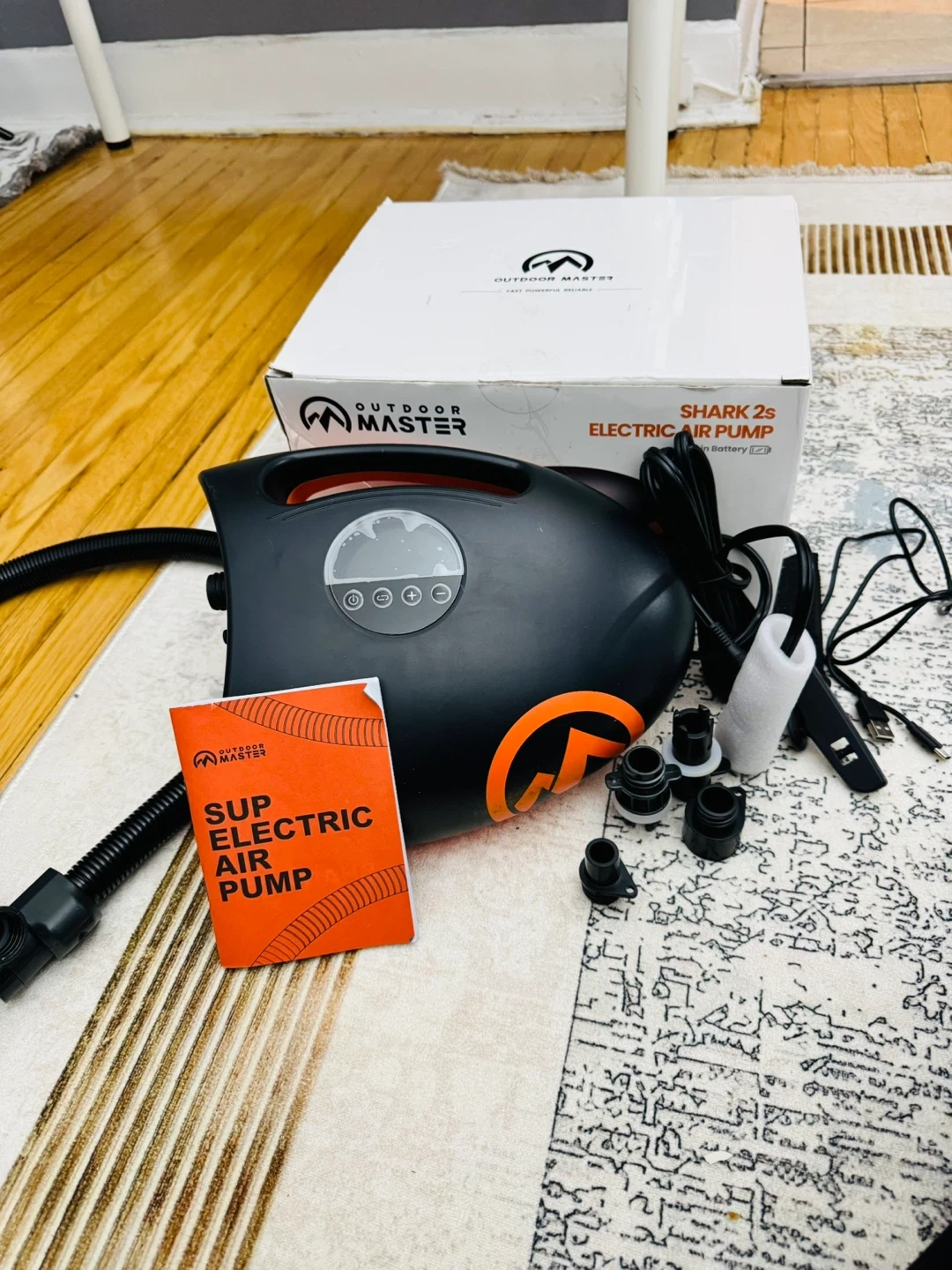 Selling an OutdoorMaster Shark 2S Electric Paddle Board Pump. It's in like new condition and comes with all the original components and accessories, including the box! This pump is perfect for inflating paddle boards and other inflatables with ease. It features a rechargeable battery, digital display, and multiple nozzles for various applications