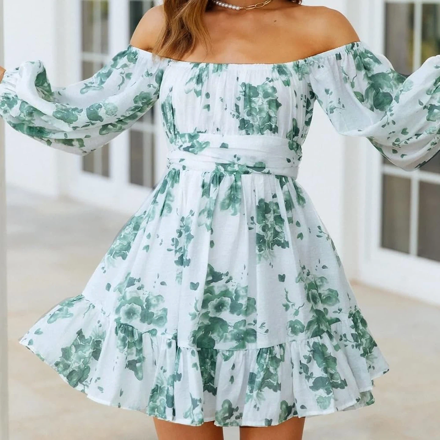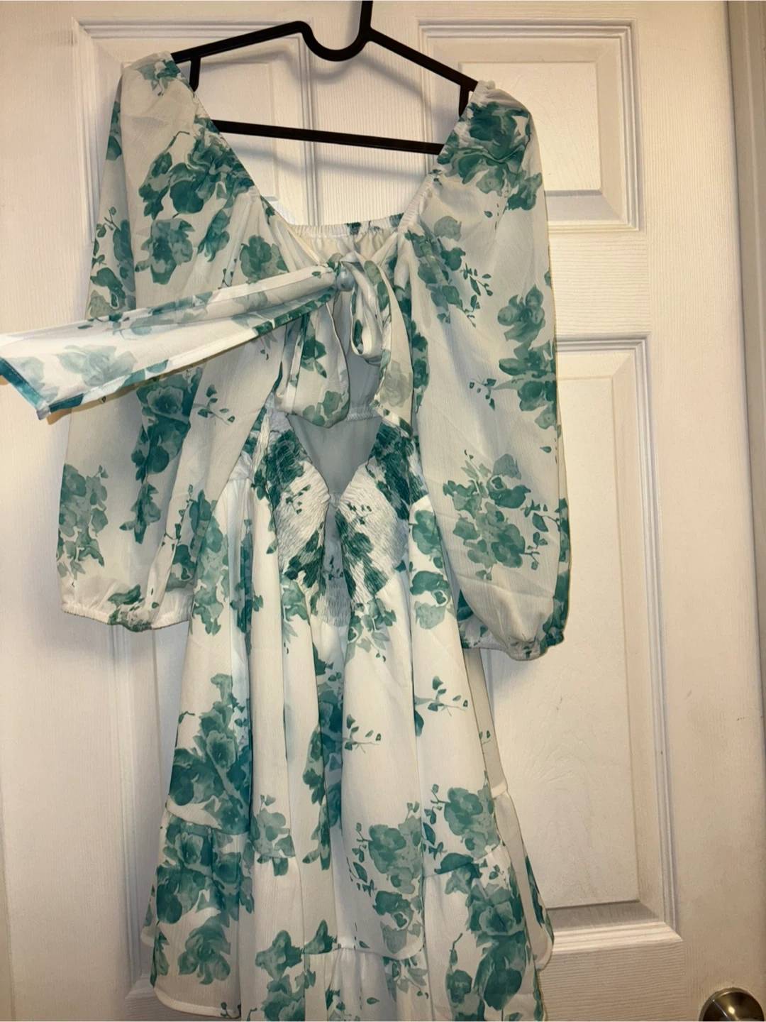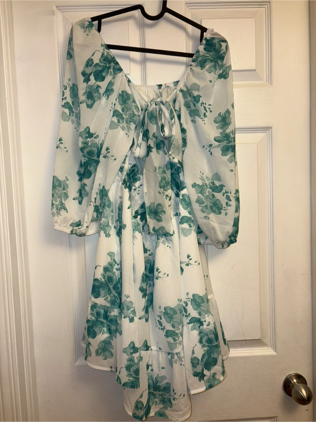 New Senllen Women's Lantern Sleeve Ruffle Off Shoulder Summer Mini Dress Senllen dress with a floral pattern! It's a size large and has a tie back and a cute flowy design. Perfect for a special occasion! Size :L No delivery