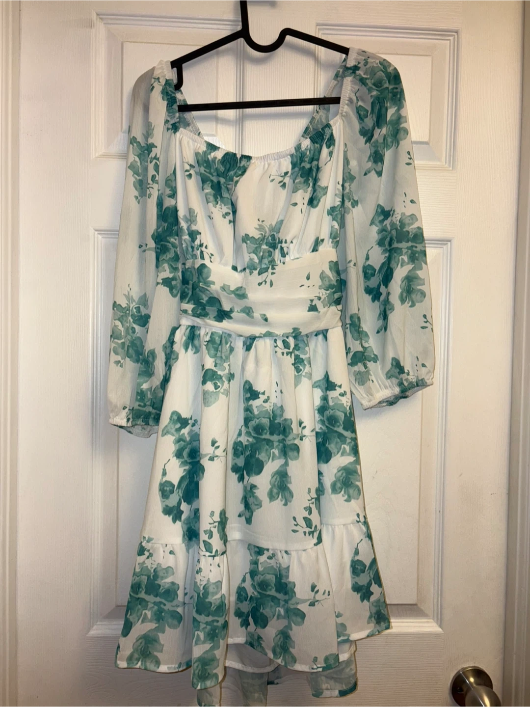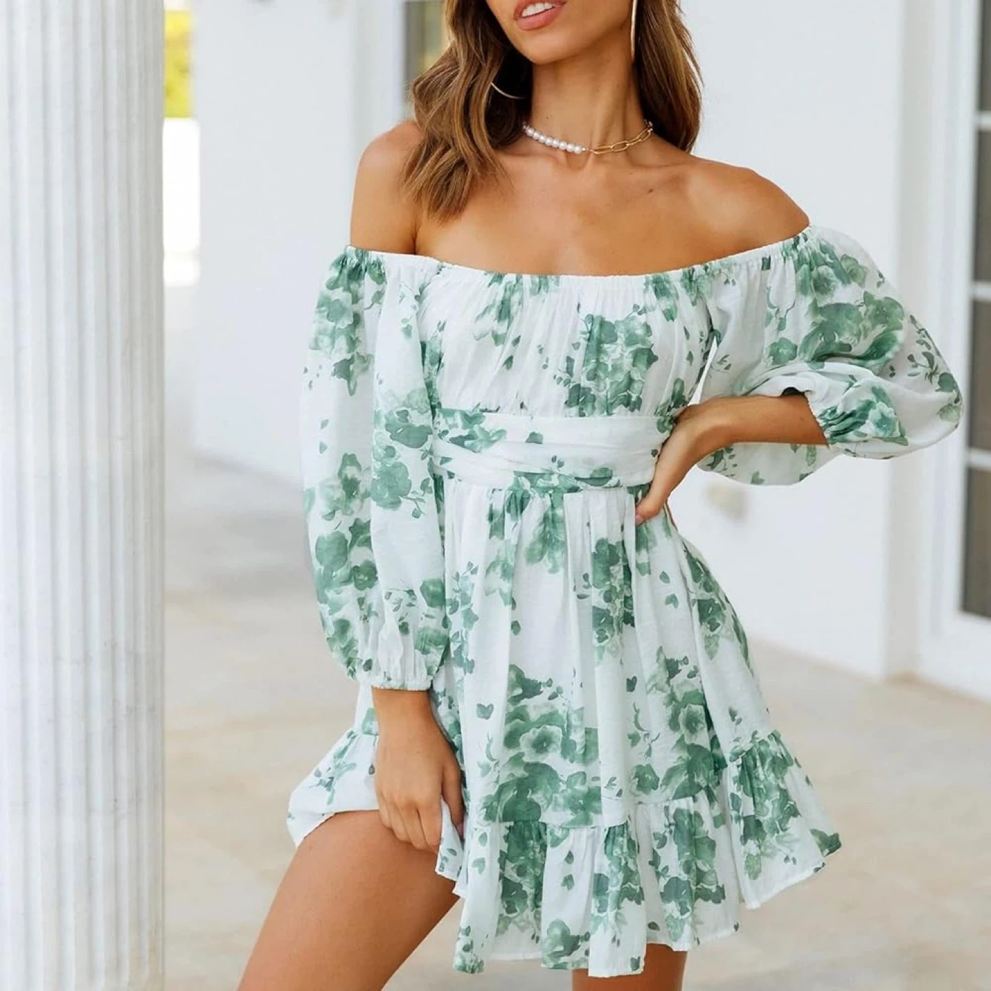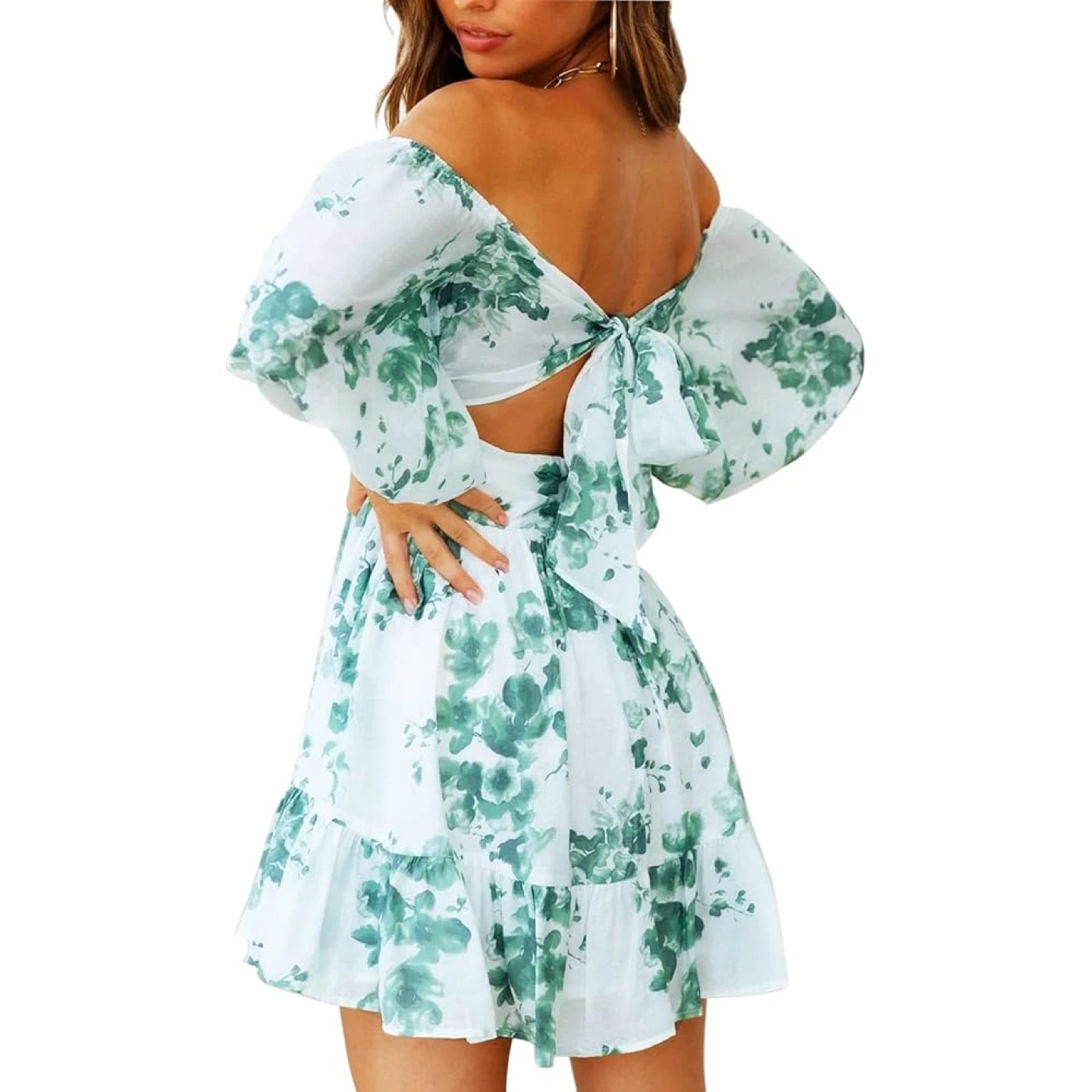 New Senllen Women's Lantern Sleeve Ruffle Off Shoulder Summer Mini Dress Senllen dress with a floral pattern! It's a size large and has a tie back and a cute flowy design. Perfect for a special occasion! Size :L No delivery