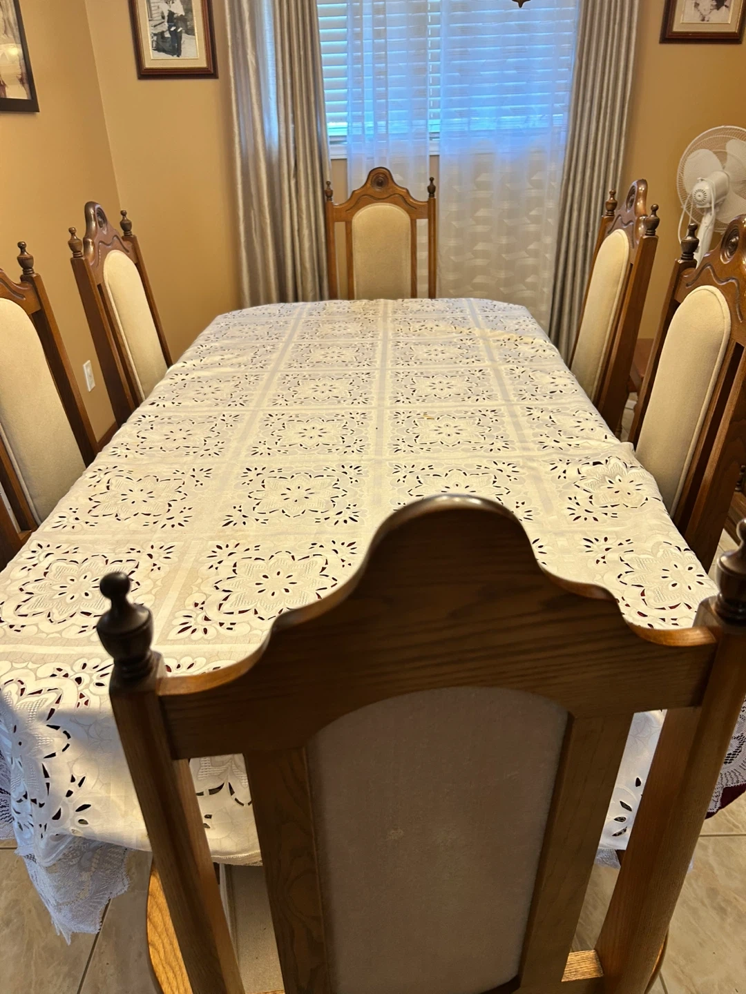 Selling a beautiful dining table set that includes a hutch. The set features a classic design with ornate details and a warm wood finish. It would be a great addition to any dining room!