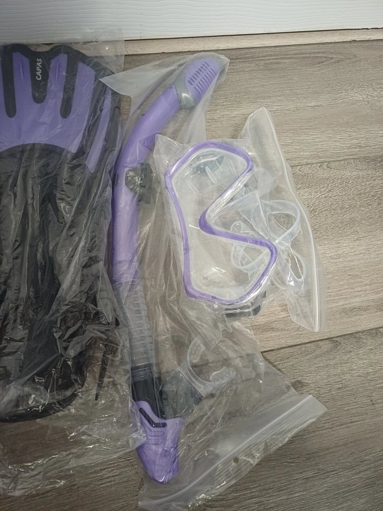 Selling a brand new Capas snorkel set! It includes a mask, fins, and a snorkel, all in a stylish purple and black colour scheme. Perfect for your next underwater adventure! Size: Small-Medium US: 6-8.8; EU: 37-42; CN: 235-260