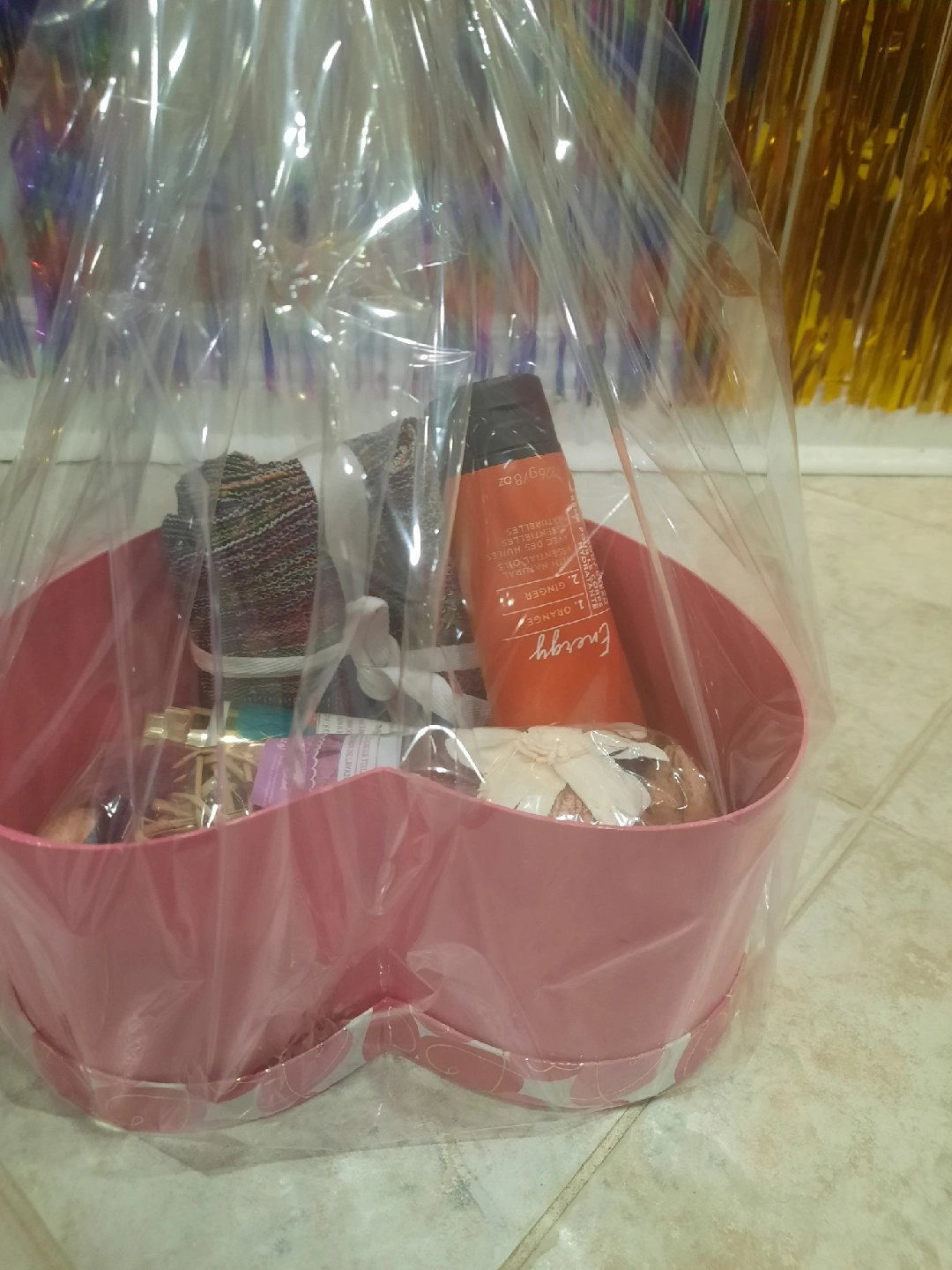 I'm selling a few gift baskets. They contain a variety of items, including bath products, socks, and decorative items. They're great for a birthday or special occasion!