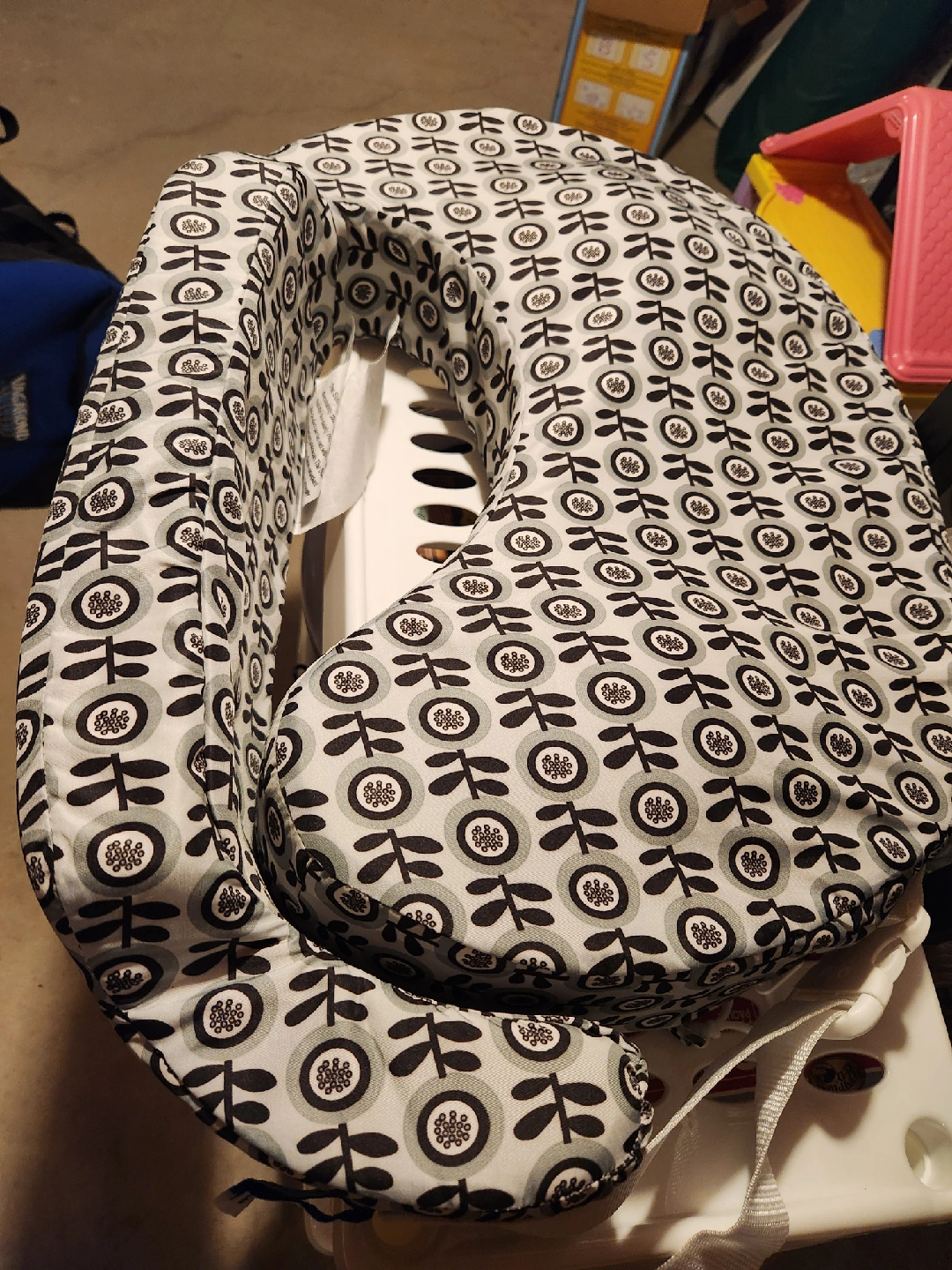 Selling a gently used My Brest Friend nursing pillow. It's in great condition and has a cute floral pattern. This pillow provides excellent support for both you and your baby during feeding time