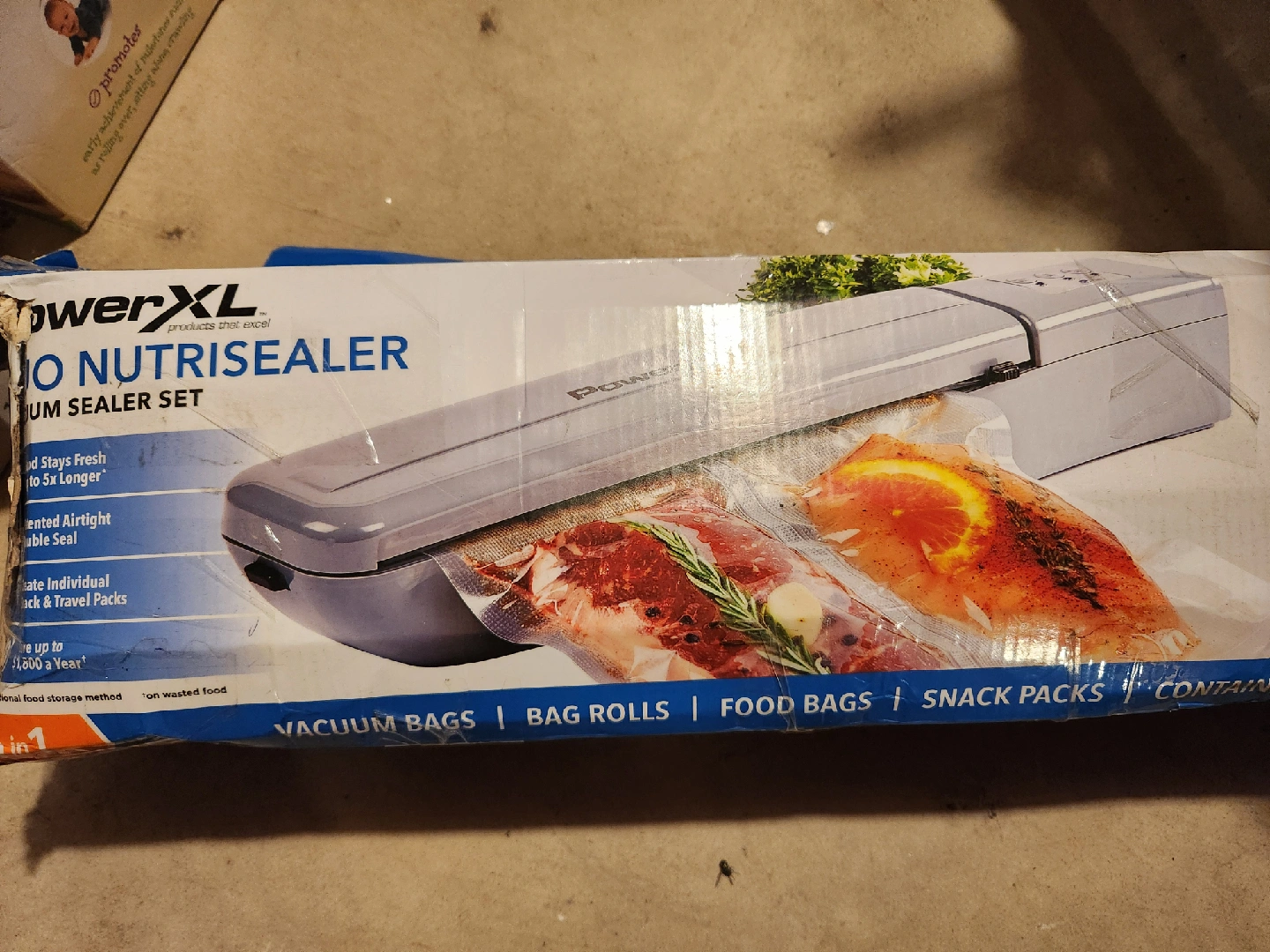 Selling a PowerXL DUO Nutrisealer vacuum sealer set. This set helps keep your food fresh up to 5x longer! The box includes vacuum bags, bag rolls, and snack packs. It's a great way to reduce wasted food and seal in flavour!