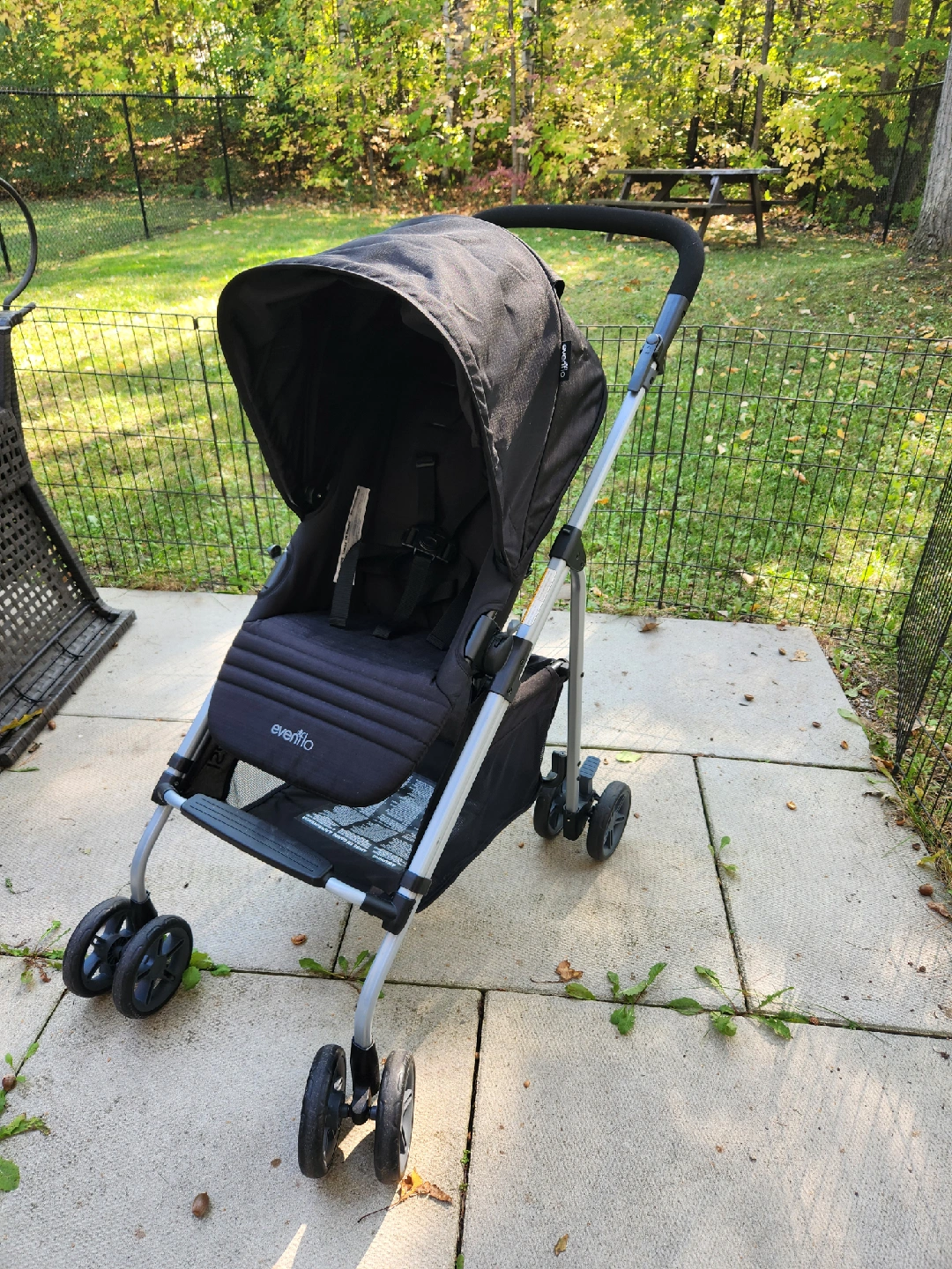Selling an Evenflo Reversi stroller in black It's in excellent condition and ready for a new home Perfect for walks around the neighbourhood or trips to the park