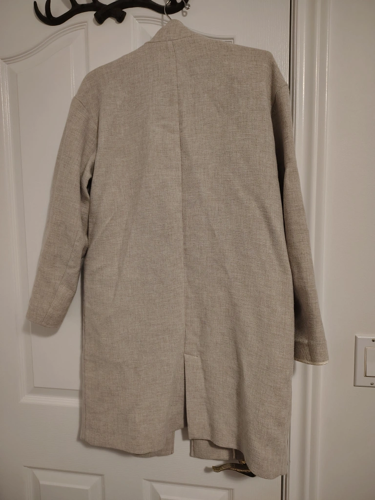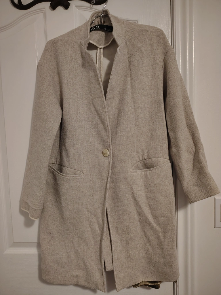 Selling a Zara coat in size XS. It's a lovely beige colour and made from a linen blend material. Perfect for layering this fall season!