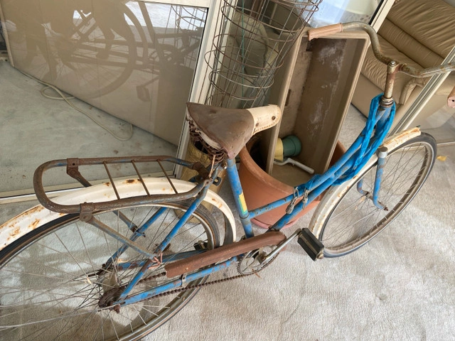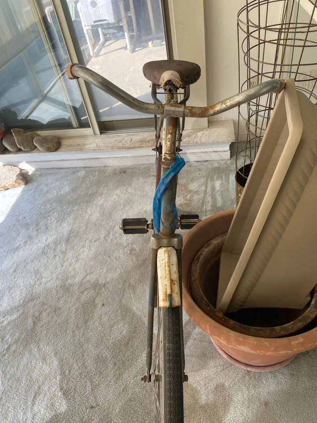 This vintage bicycle is a classic piece, perfect for restoration or display. The frame is sturdy, though it shows signs of age and wear. It could be a fun project for a cycling enthusiast. While it's not ready to hit the road immediately, it has the potential to become a charming ride with a little TLC. For Sale By: Owner. Cash accepted.