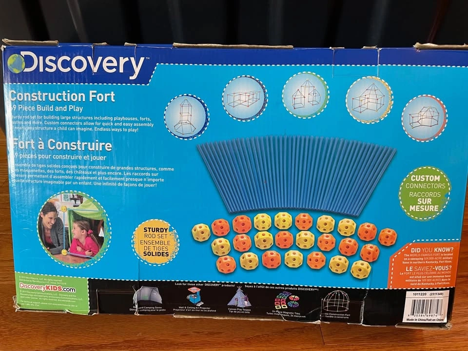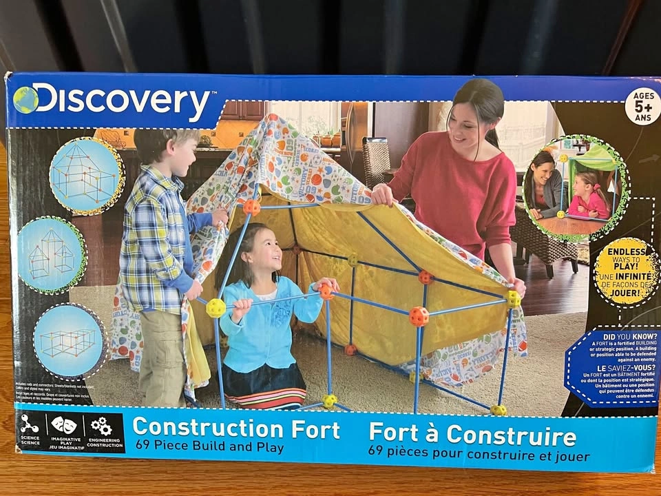 Discovery Kids Build and Play Construction Fort features a sturdy rod set for building large structures such as playhouses, forts, castles and more 72 custom connectors allow for quick and easy assembly. Recommended for ages 5 years and up Good Condition. $15 (retail $40) Pick-up in Oakville. Just north of the QEW off Bronte.