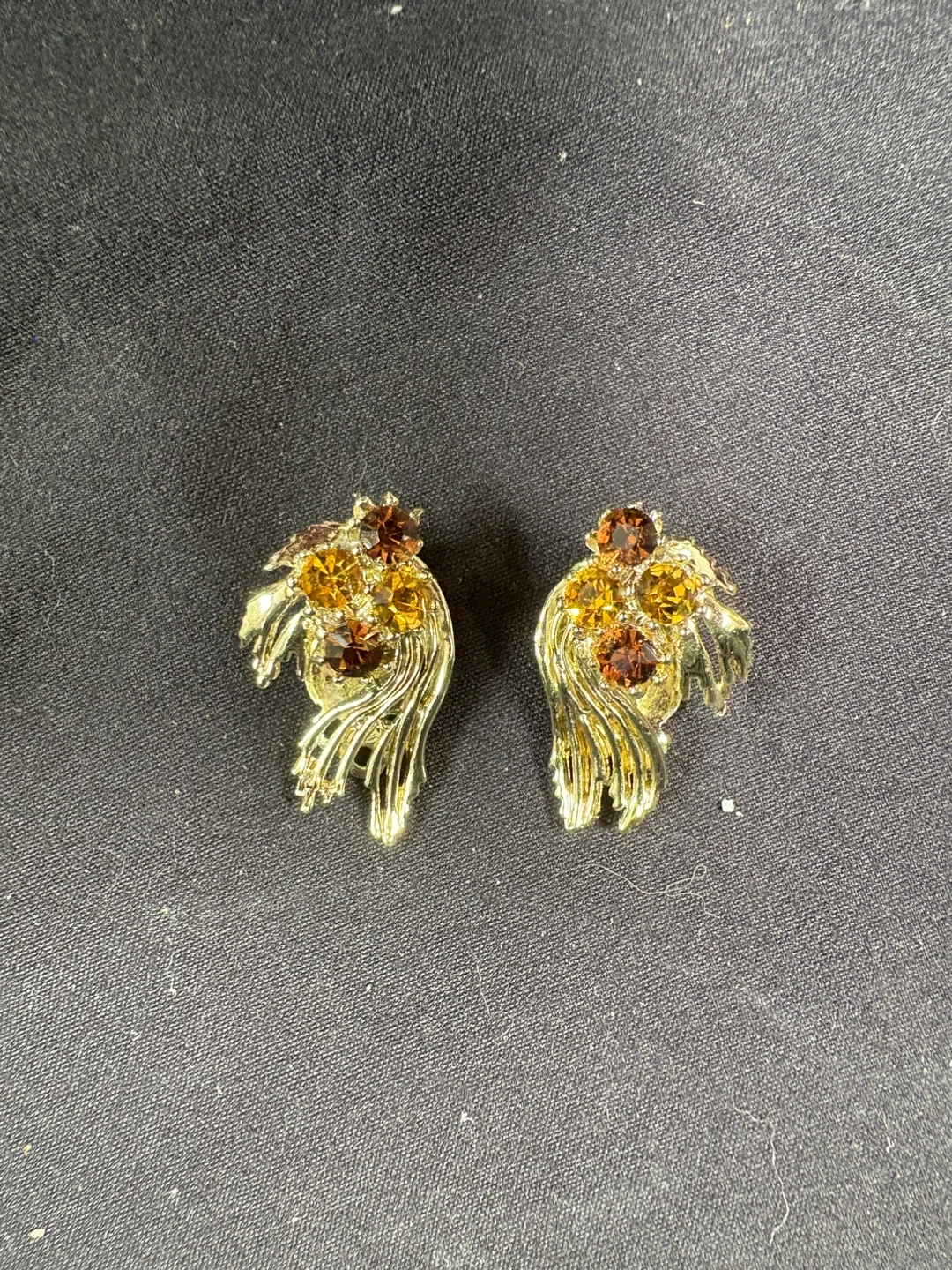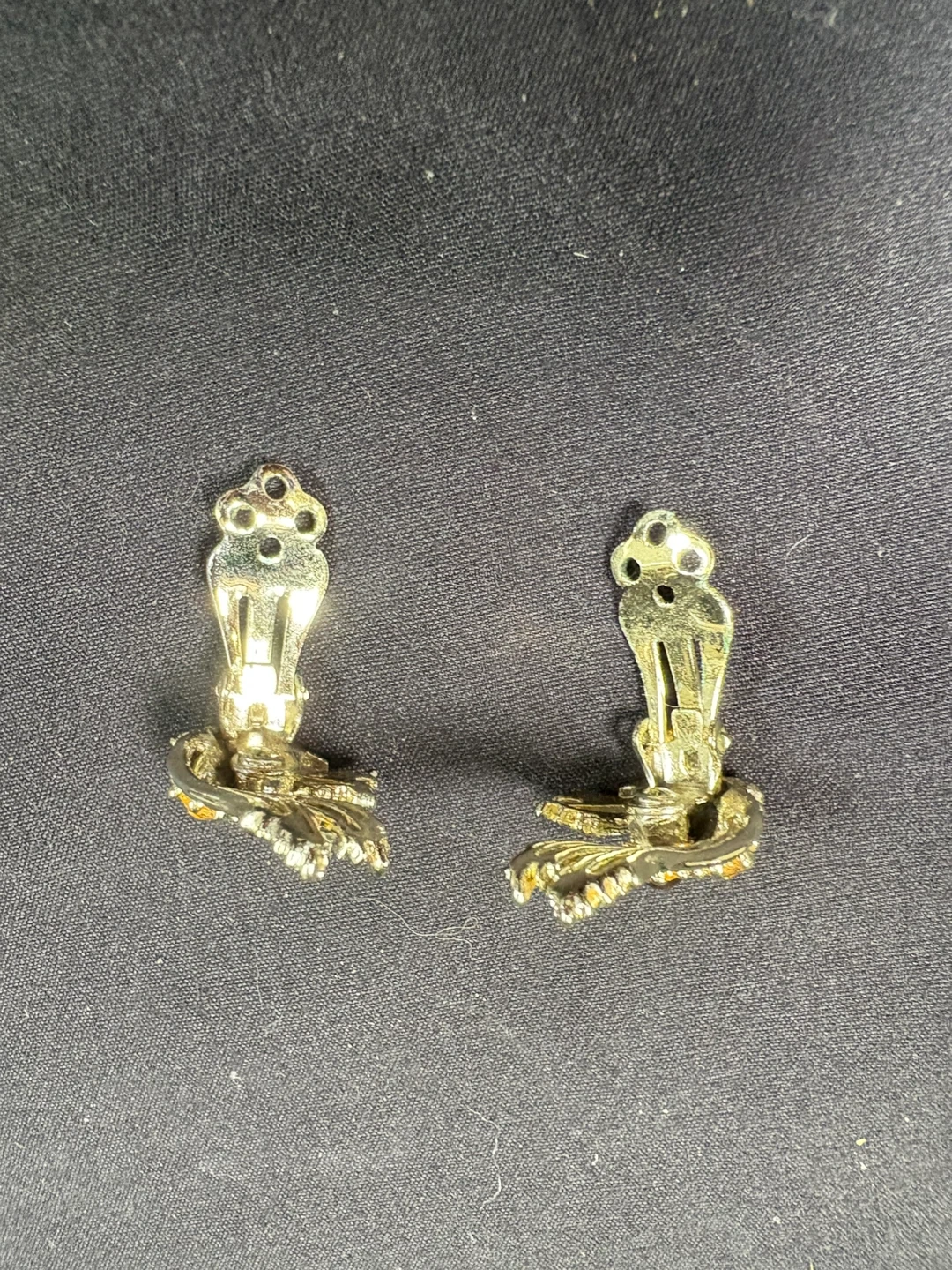 🧡like new Vintage Gold Tone Clip-On Earrings Here are a pair of vintage gold tone clip-on earrings. They feature a floral design with amber-coloured stones. These earrings are in great condition and would be a lovely addition to any jewelry collection FREE Pick up Victoria Park & O’Connor area