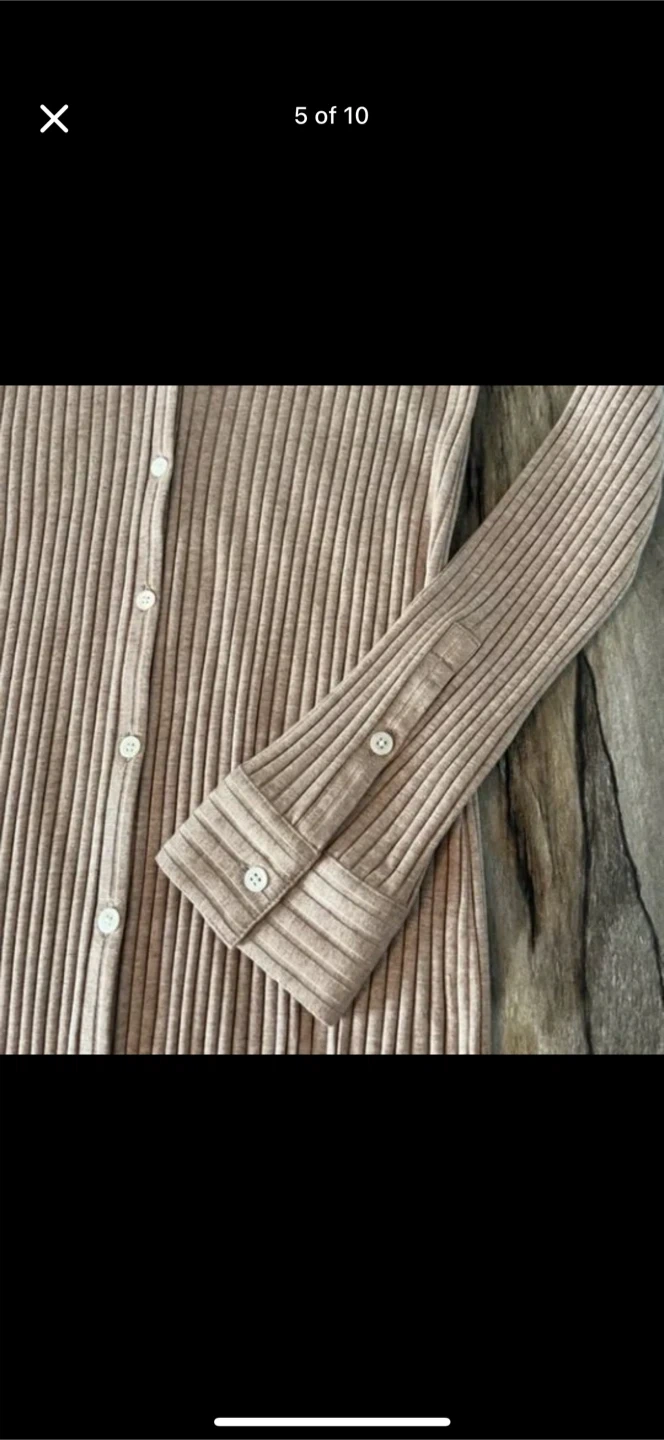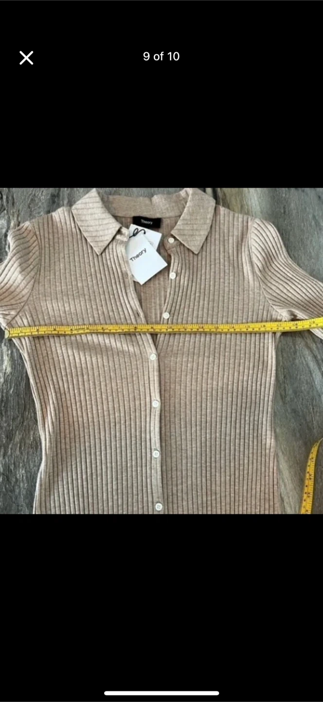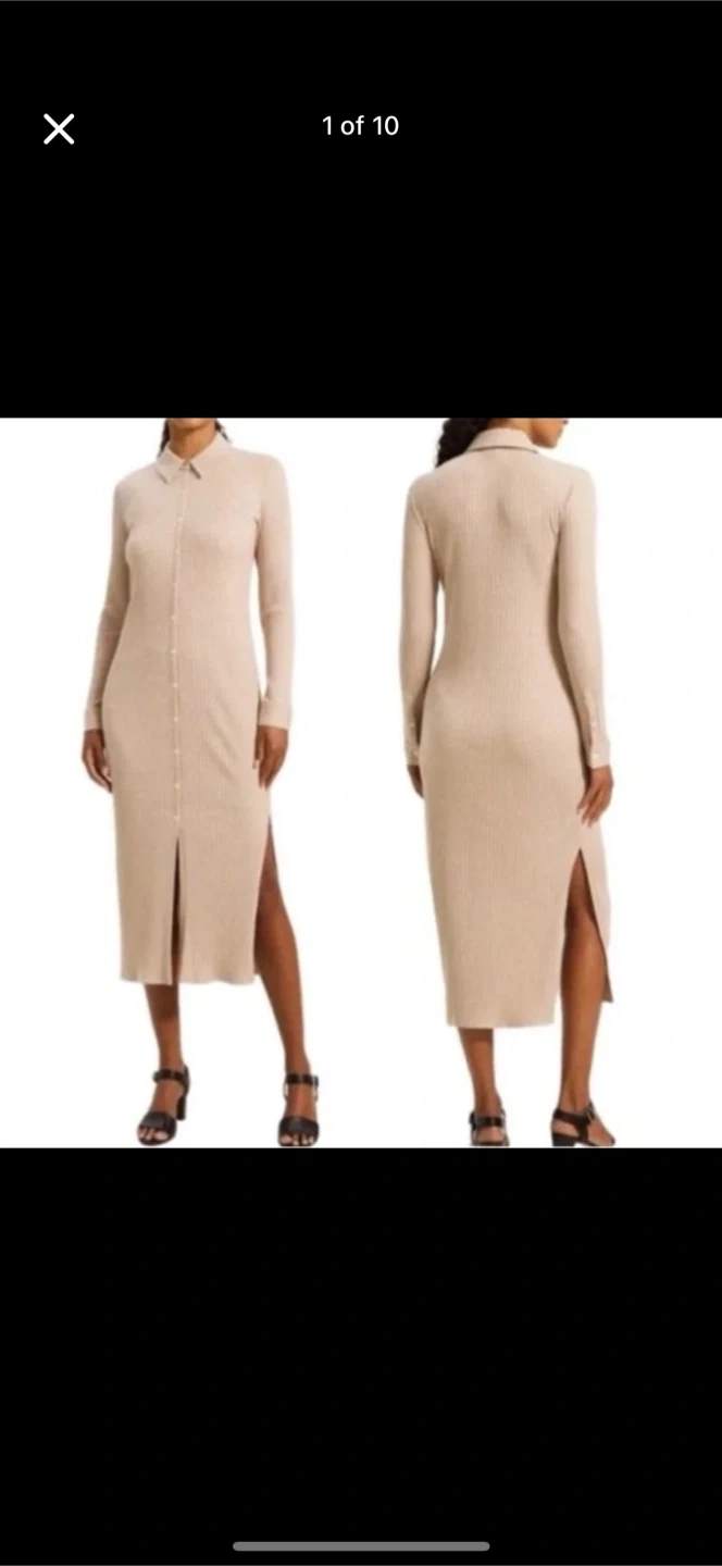 Theory Dress Size Medium *Brand New With Tags* Theory Button Down Maxi Dress Medium Sand Melange color Soft Wide Rib M0729620 Side slits Button cuffs Fabric provides stretch Relaxed fit Long sleeves 48.5" long Button front closure Pointed collar 53% Modal 43% cotton 4% spandex Machine wash cold New with tags Pin hole near collar left from security tag-see last picture