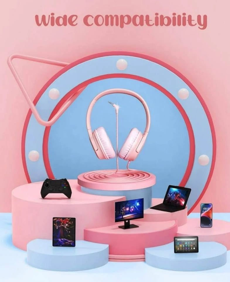 New, sealed in original factory packaging. Color: Pink Hearing Protection, Music Sharing, Safe Material, Portable Design. 85dB/94dB Volume Limit. The kids headphones with cord are designed with soft ear cups and an adjustable headband to ensure that children will not feel uncomfortable even if they wear them for a long time. Moreover, the material of the wired kids headphones is sturdy, durable and not easily damaged, so you can rest assured when your children use these kids headphones with cord