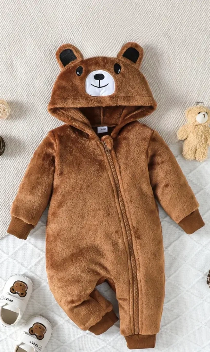1pc Baby Boys' Bear Onesie. Winter Outfit with Full Zipper Front, Warm Brown Teddy Bear Romper, Easy-diaper Change for Newborns & Infants (Fall/Winter) - Cute Baby Clothes, Perfect for Outdoor.