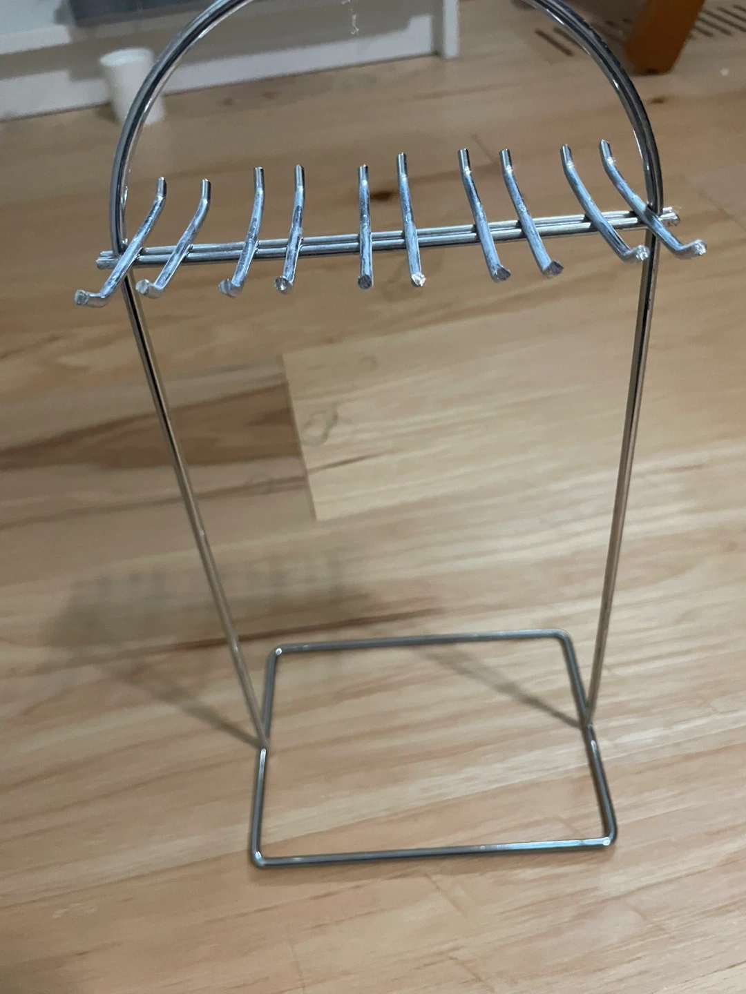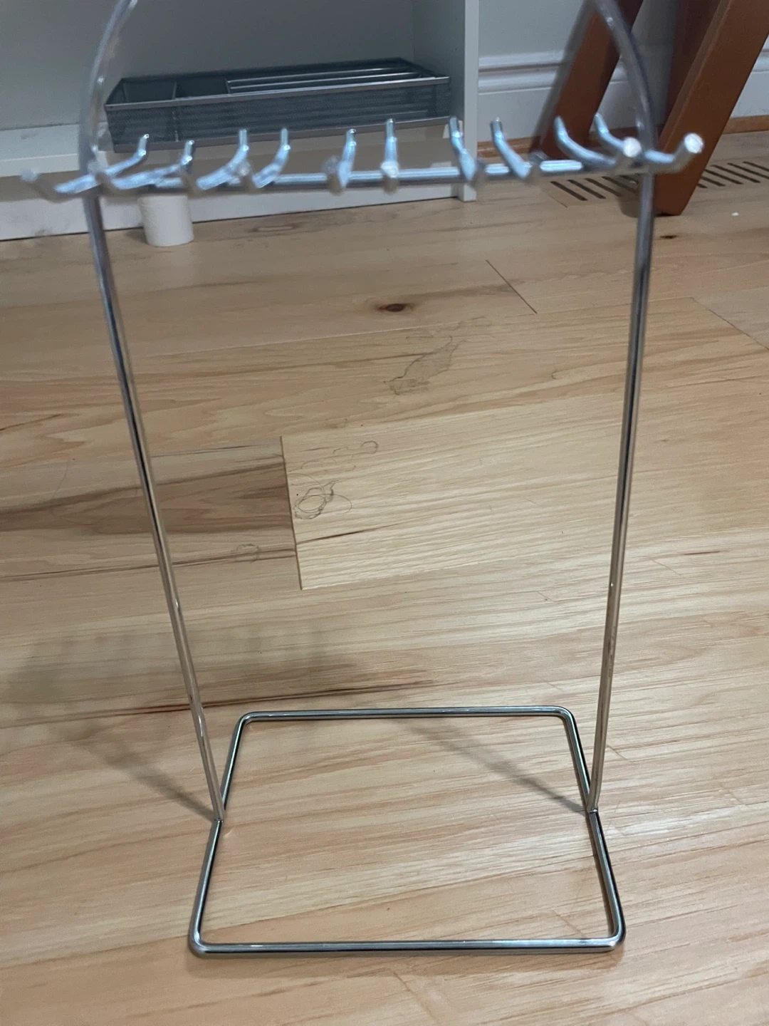 Sturdy metal necklace rack, perfect for organizing and displaying your jewelry. Holds multiple necklaces, bracelets, or other accessories. Sleek, durable, and in great condition β a must-have for keeping your collection tangle-free! β¨ Sturdy metal construction π« Holds multiple necklaces and bracelets π€ Sleek and functional design Cleaning out my home and no longer need it. Cash preferred, but e-transfer also accepted.