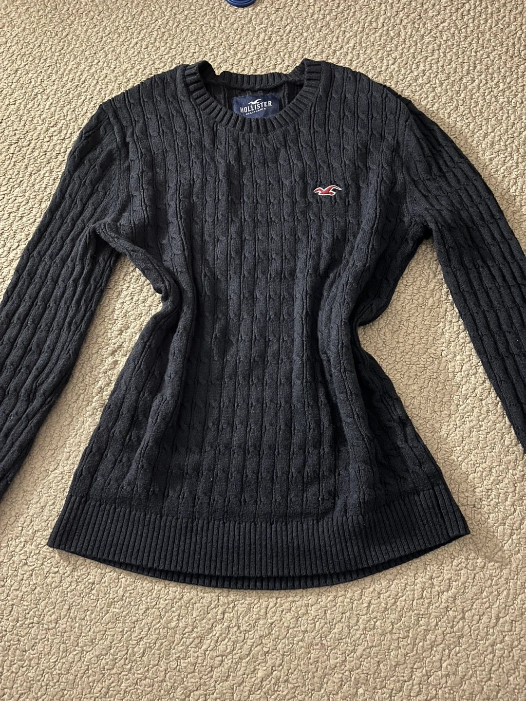 Cozy Hollister sweater in a classic black cable knit design! It's a size small and in great condition. Perfect for staying warm and stylish on cooler days.