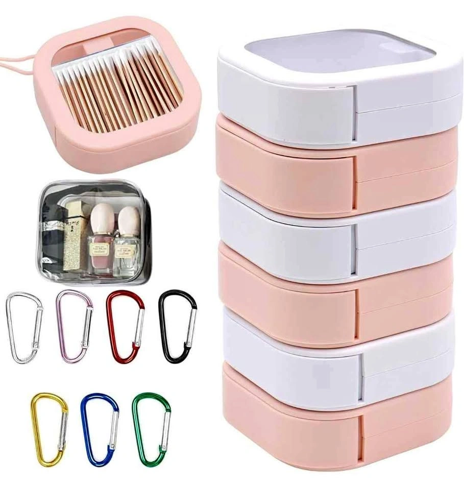 6 Pcs Hair Tie Organizer, Portable Travel Qtip Holder Stackable Hair Accessory Storage Containers Bathroom Storage Organizer Cotton Swab Dispenser with Lid Perfect gift for birthday, Christmas, Valentines, just because...
