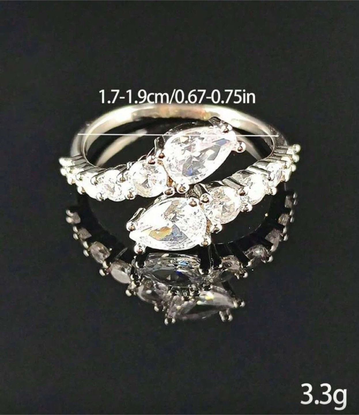 📍Quick pick up: • Near Dundas Station (3 min walk - new T&T) • St.George station • Sheppard West station ✅ Brand new adjustable ring, weight 3.3g. ✨ Size: 1.7–1.9 cm (0.67–0.75 in) – adjustable fit ✨ Sparkling zircon stones with a teardrop design ✨ Elegant silver-tone band Perfect for everyday wear or special occasions. Comes without a box (box used only for photos)