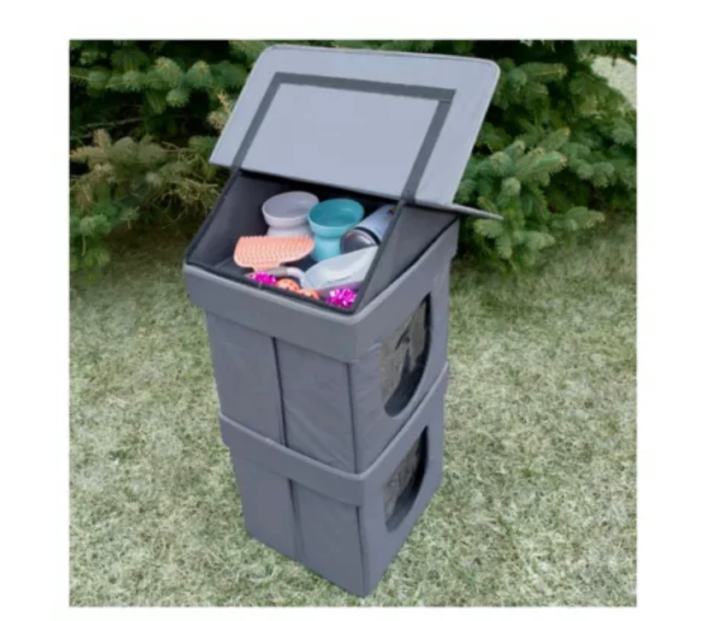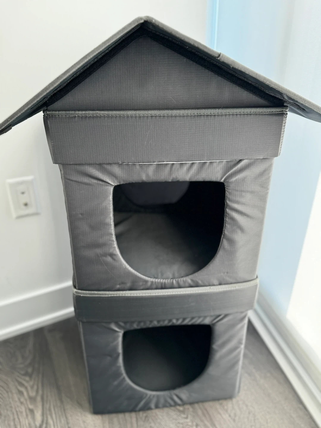 Here's a two-story cat house that you can use indoor or outdoor! It's in great shape and ready for a new feline friend. The house is grey and features multiple openings for your cat to explore and relax in. It provides a cozy and secure space for your cat to enjoy! First two pics from ad. Remaining pics are from actual item. *please read before reaching out* - price is fixed. Reach out only if interested. - item is first pay first serve. - pick up 5 min walk from Yonge and Bloor Station (Charles/Yonge)