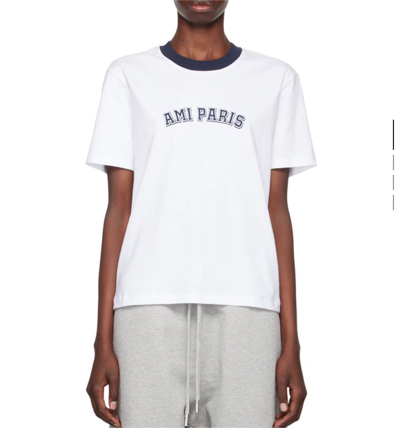📍Quick pick up: • Near Dundas Station (3 min walk - new T&T) • St.George station • Sheppard West station ✅Description: Unisex white cotton t-shirt. Features navy trim around the collar and AMI PARIS logo. Short sleeves. Worn 2 times Paid $370 Authentic Size XL
