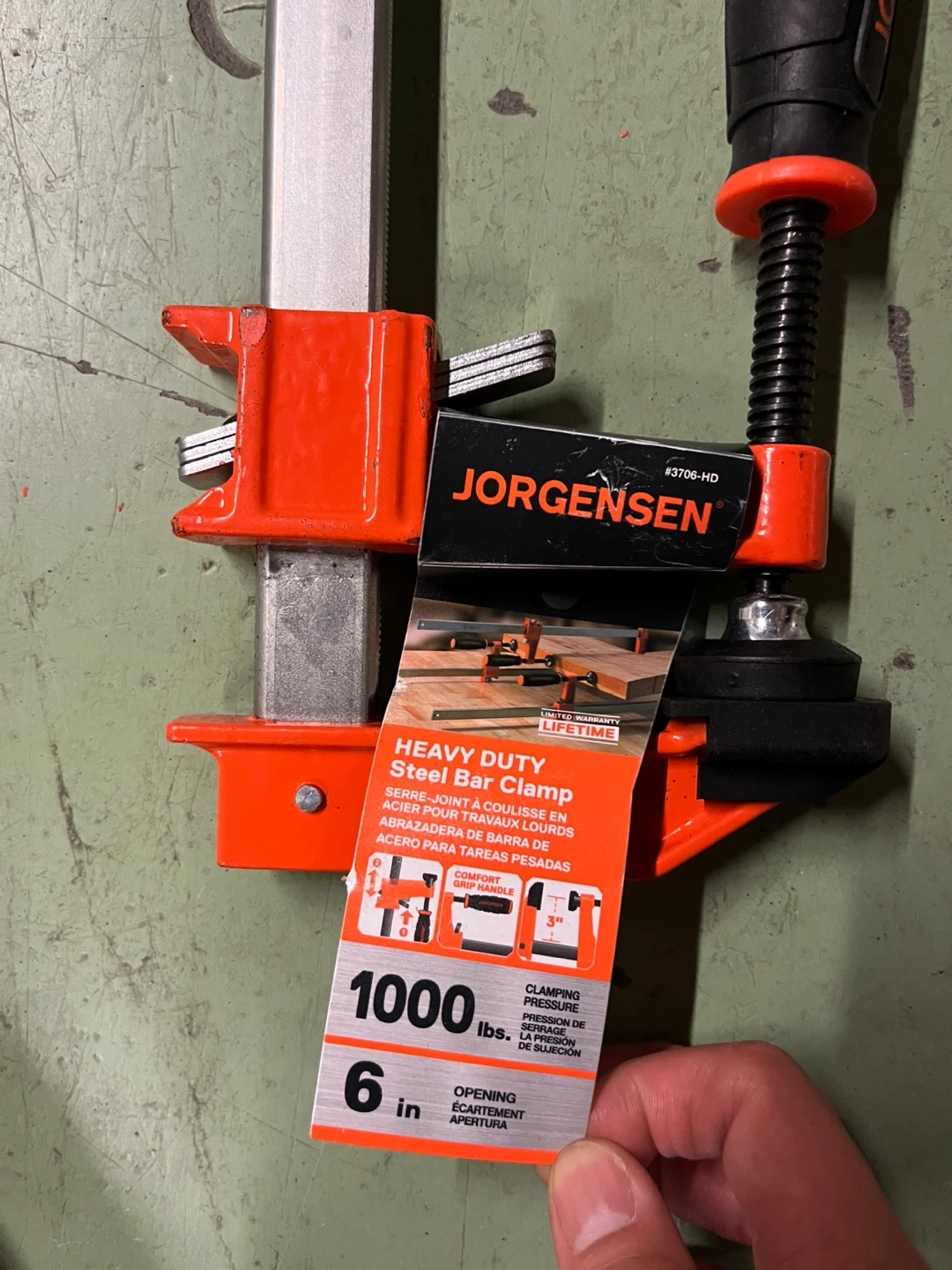 Selling a Jorgensen Heavy Duty Steel Bar Clamp. It's 6 inches and can hold up to 1000 lbs. Great for woodworking or other projects!