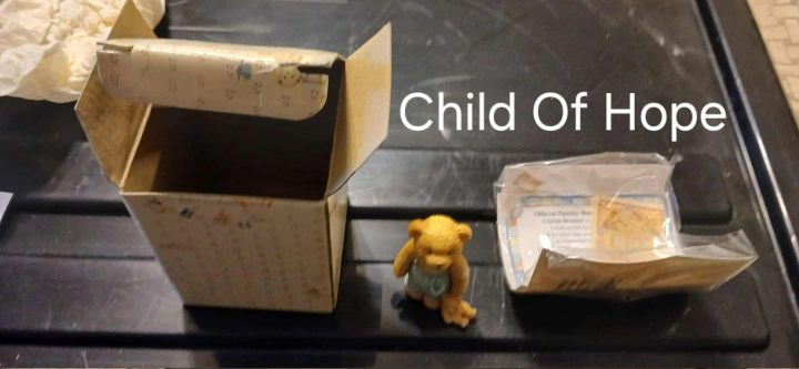 Child Of Hope miniature bear figurine. It comes with its original box and packaging. A charming collectible item!