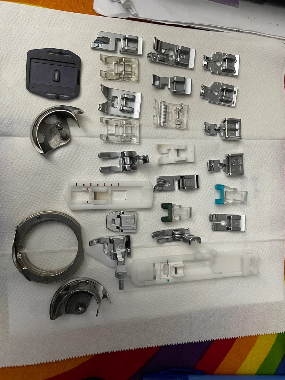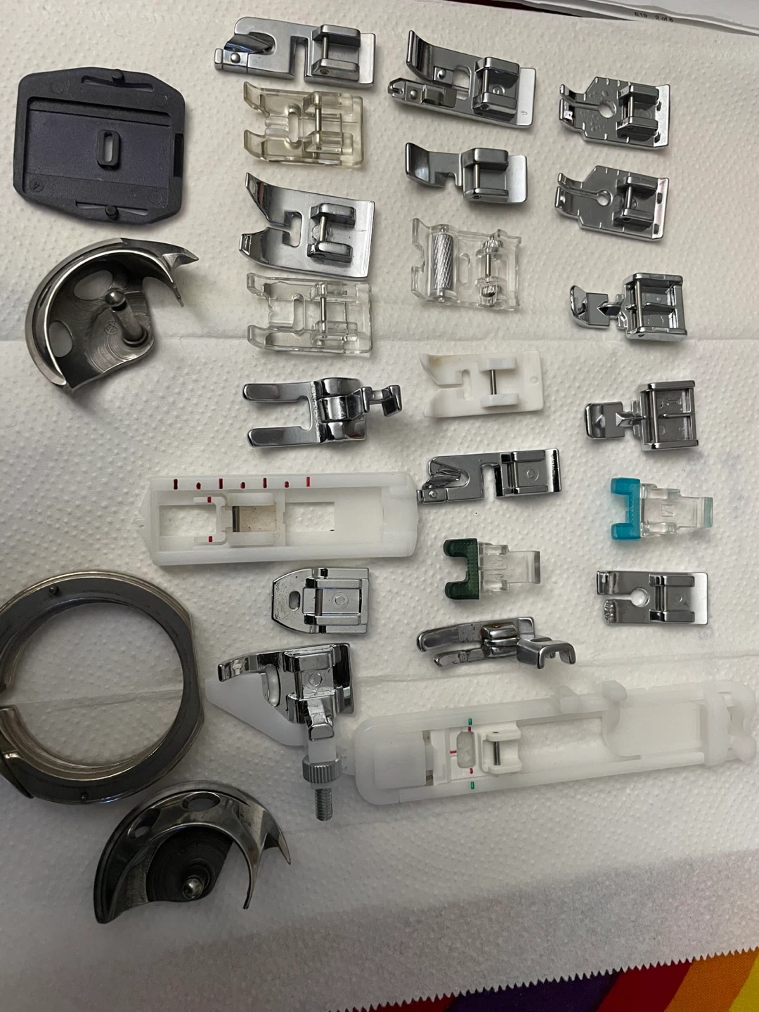 Selling a set of various sewing machine presser feet and a bobbin case. These appear to be in good condition and ready for your next sewing project! Perfect for someone looking to expand their sewing capabilities or replace worn parts text me for price difference