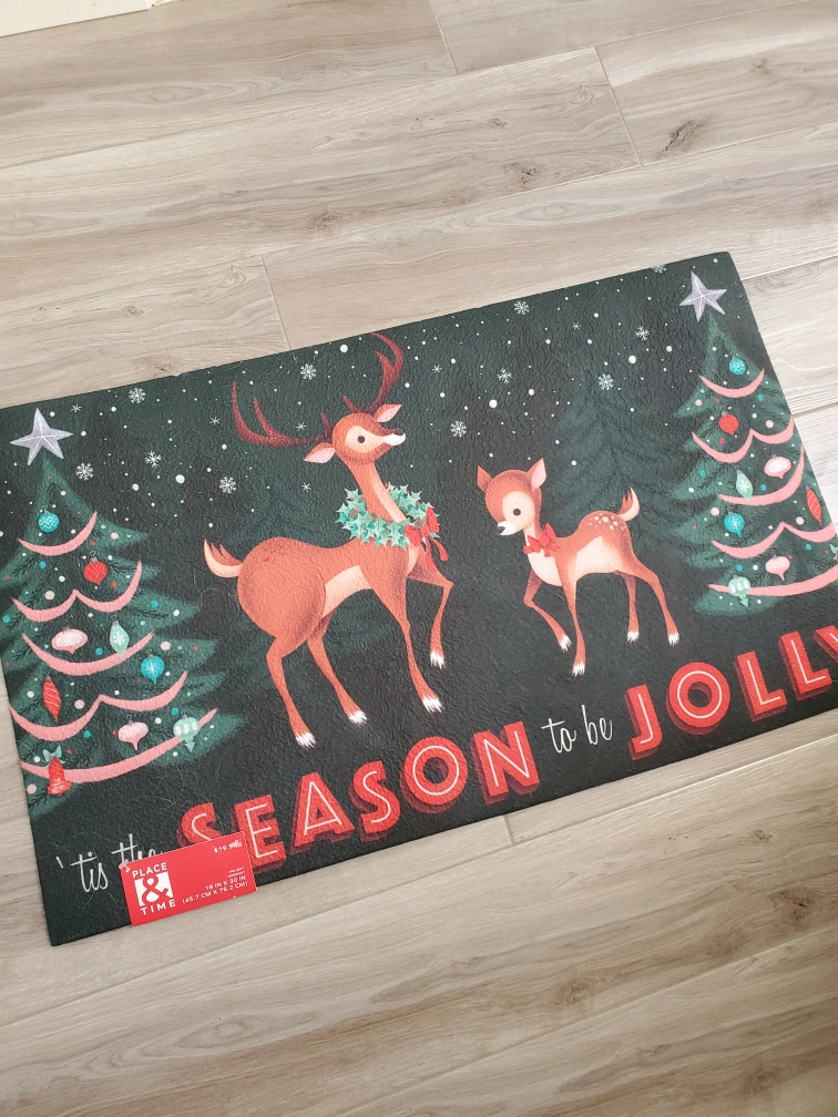 Get into the holiday spirit with this festive doormat from Place & Time! It features a cute reindeer design and the phrase "'tis the season to be jolly". - Size: 18 in x 30 in (45.7 cm x 76.2 cm) - Brand: Place & Time - It was originally bought for $19.99