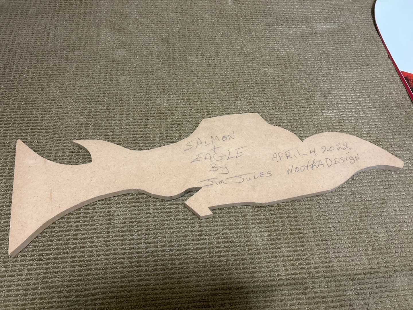 Selling a wooden Salmon Eagle carving by Jim Jules of Nootka Design. It's a unique piece!