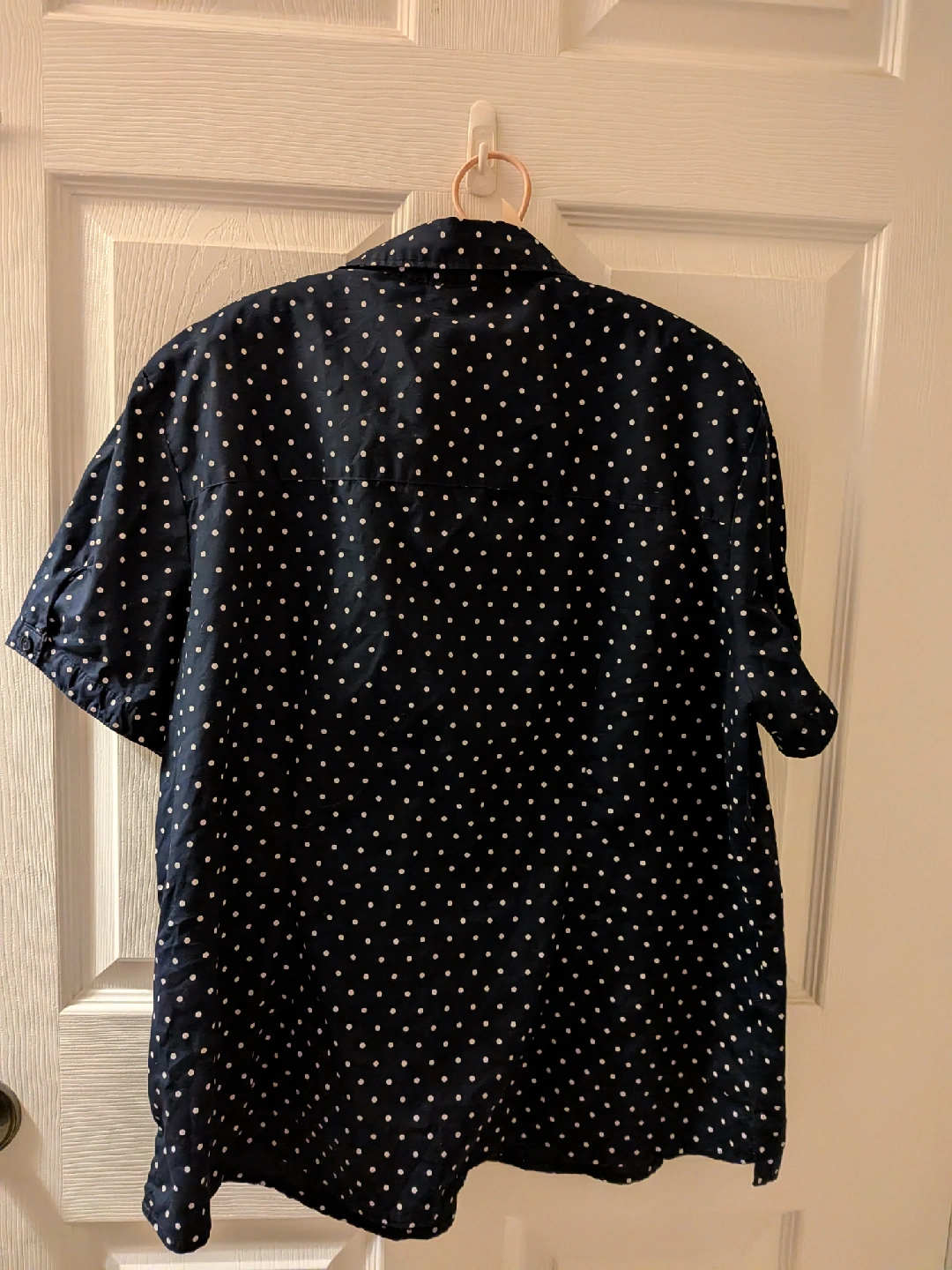 Here's a cute polka dot short sleeve shirt! It's an extra large size and made of 55% cotton and 45% polyester. It's in great condition and ready for a new home! Pickup location Oxford and Wonderland FCFS Cross posted please checkout my other listings...