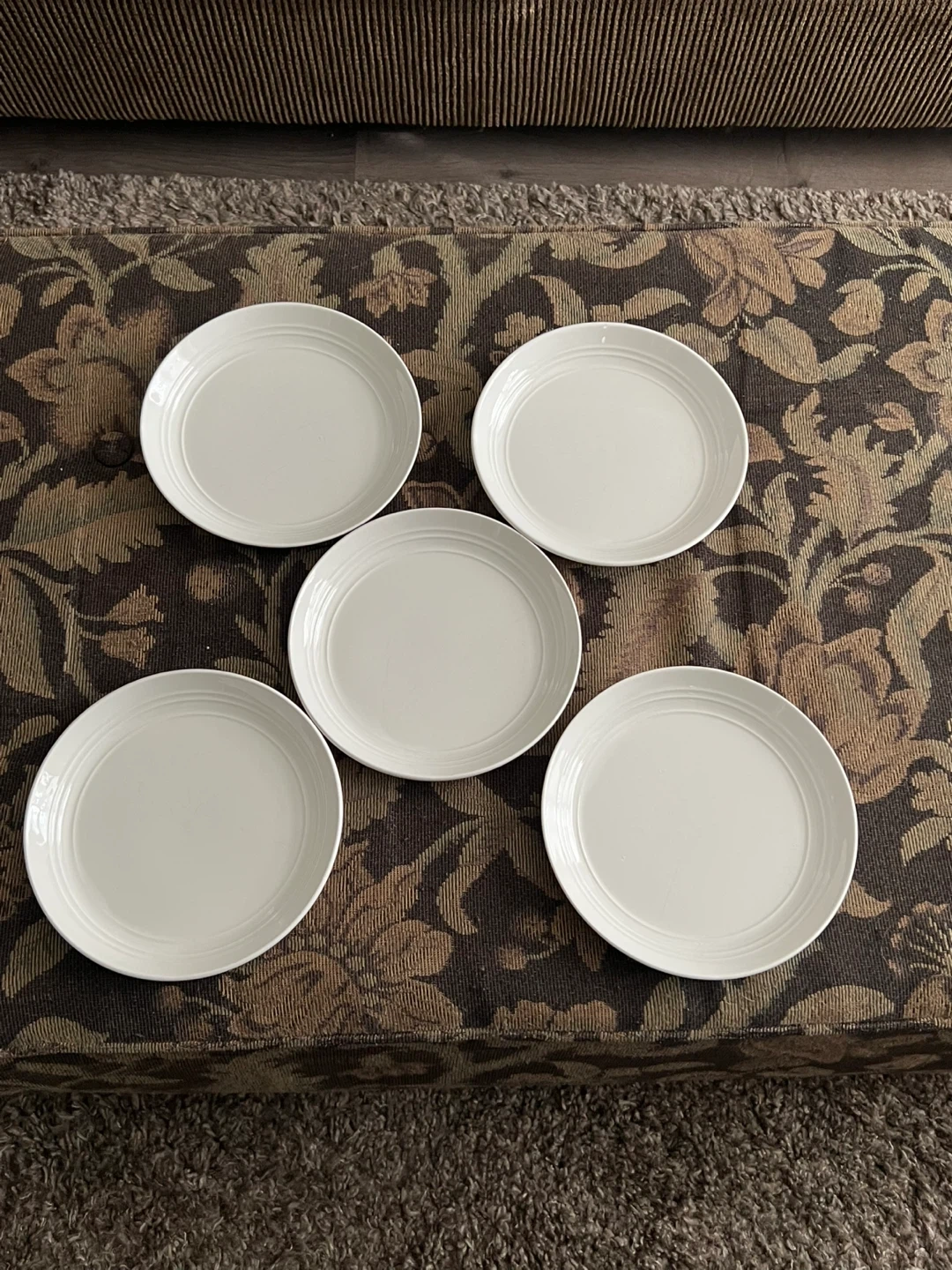 Selling a set of five Threshold Westfield stoneware dinner plates! They're in great shape and ready for a new home. These plates are dishwasher and microwave safe, making them super convenient for everyday use. Each plate measures approximately 10.5 inches in diameter.