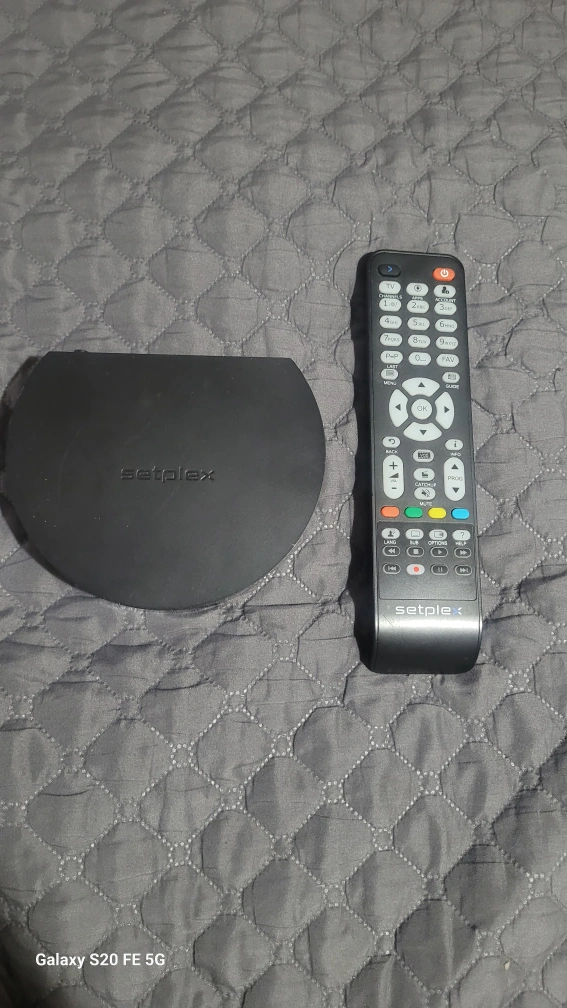 Selling a Setplex TV box, complete with its remote control. It's in good condition and ready to use for your streaming needs!