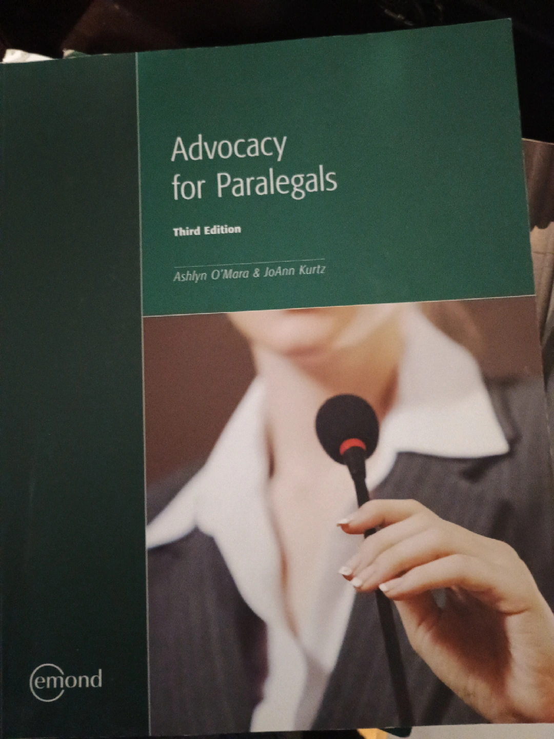 Selling Advocacy for Paralegals, Third Edition, by Ashlyn O'Mara & JoAnn Kurtz. A great book for paralegal studies!