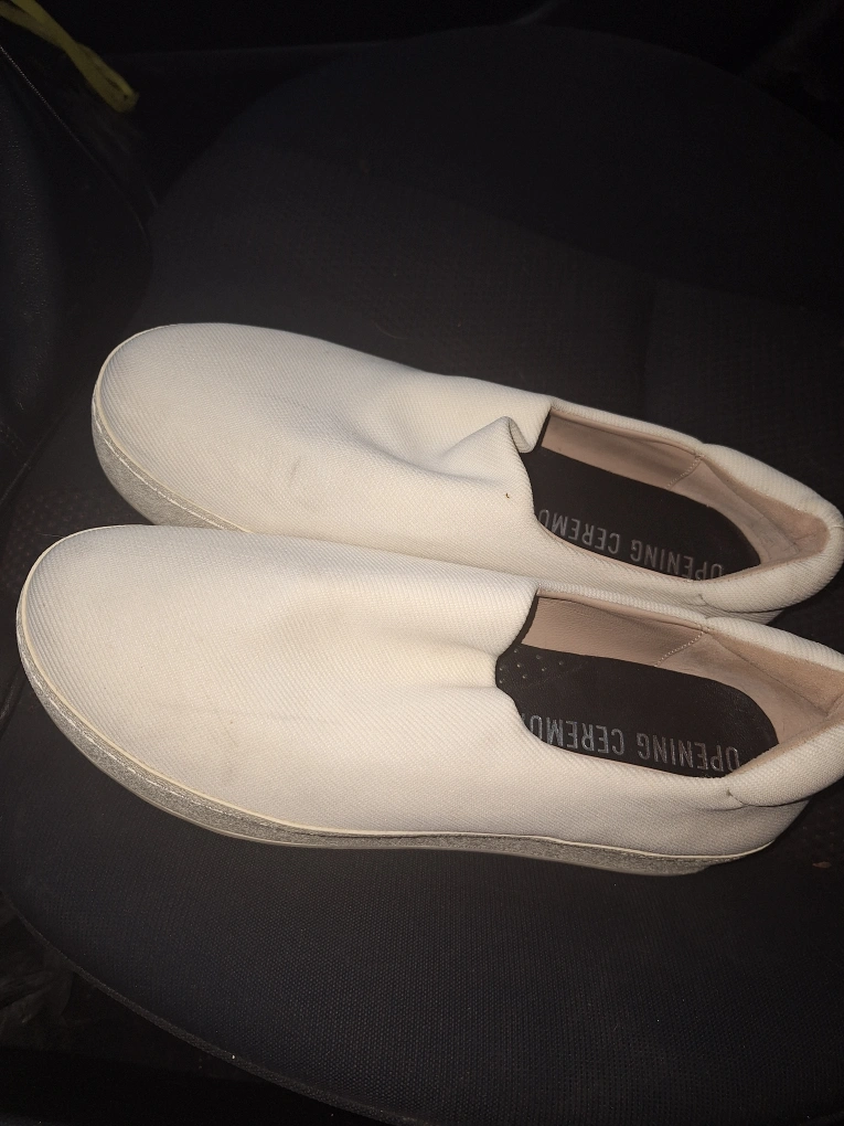 Selling a pair of Opening Ceremony slip-on sneakers in white. They're in great condition and ready for a new home! Bingo❤️