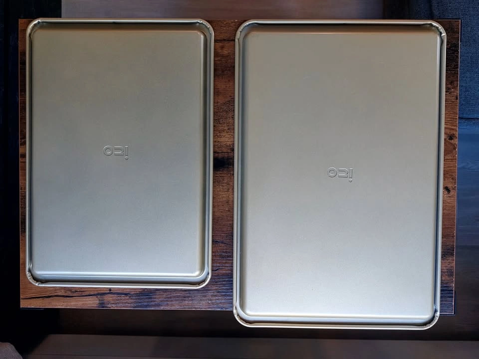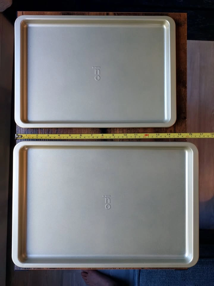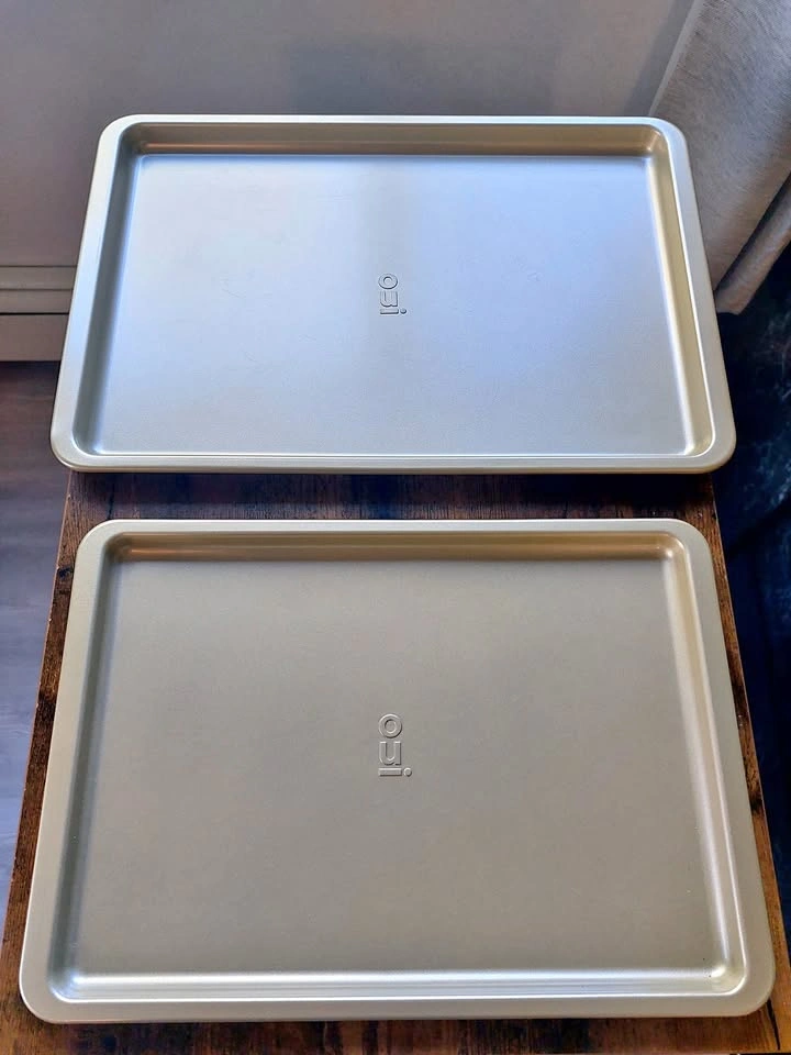 These are two nonstick baking sheets. Made by OUI, sturdy with a gold colour. Pickup at 12th Ave and Columbia St, near Broadway City Hall Skytrain.