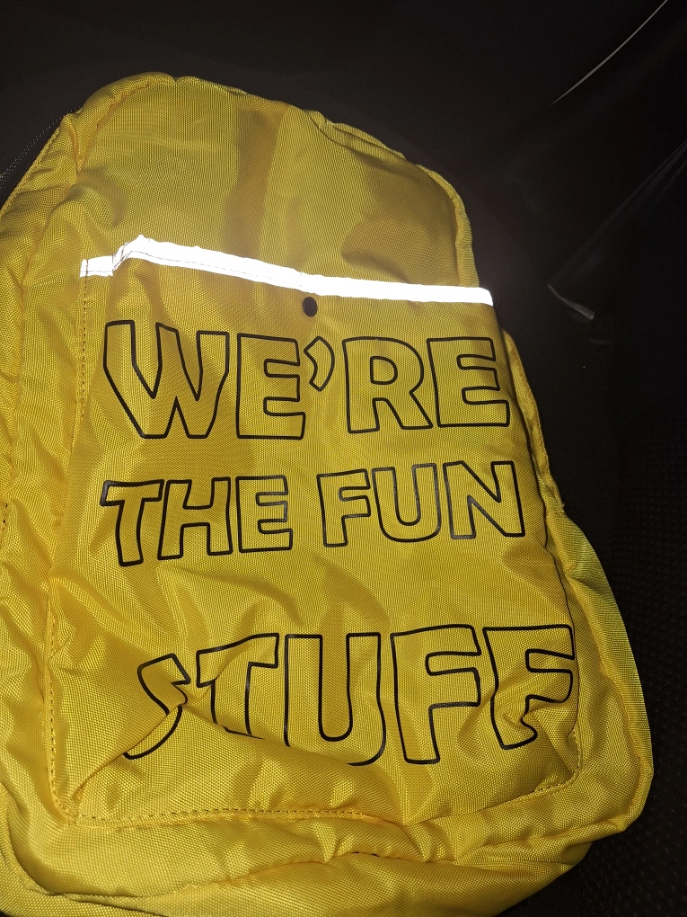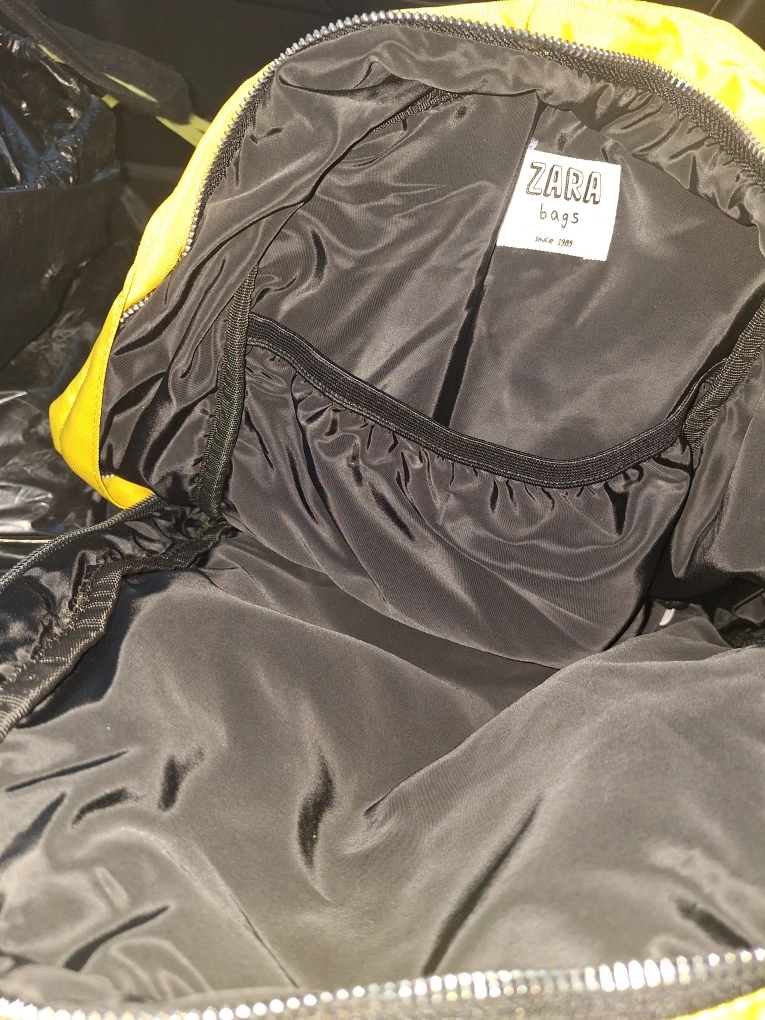 Selling a Zara backpack in bright yellow! It features a black interior and the phrase "We're the Fun Stuff" on the front pocket. Perfect for adding a pop of colour to your day