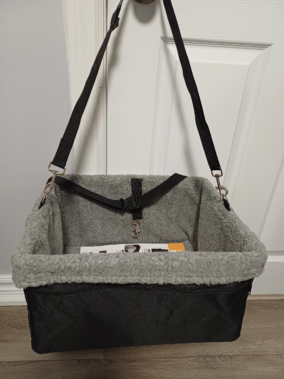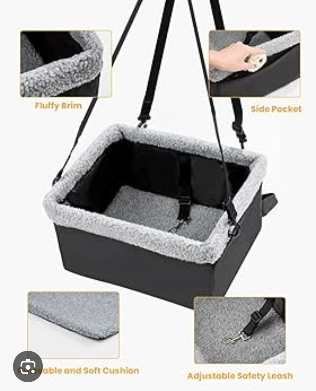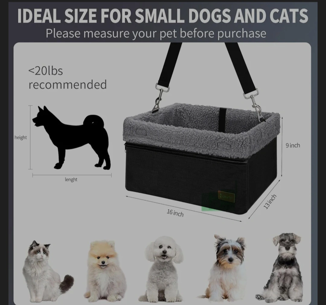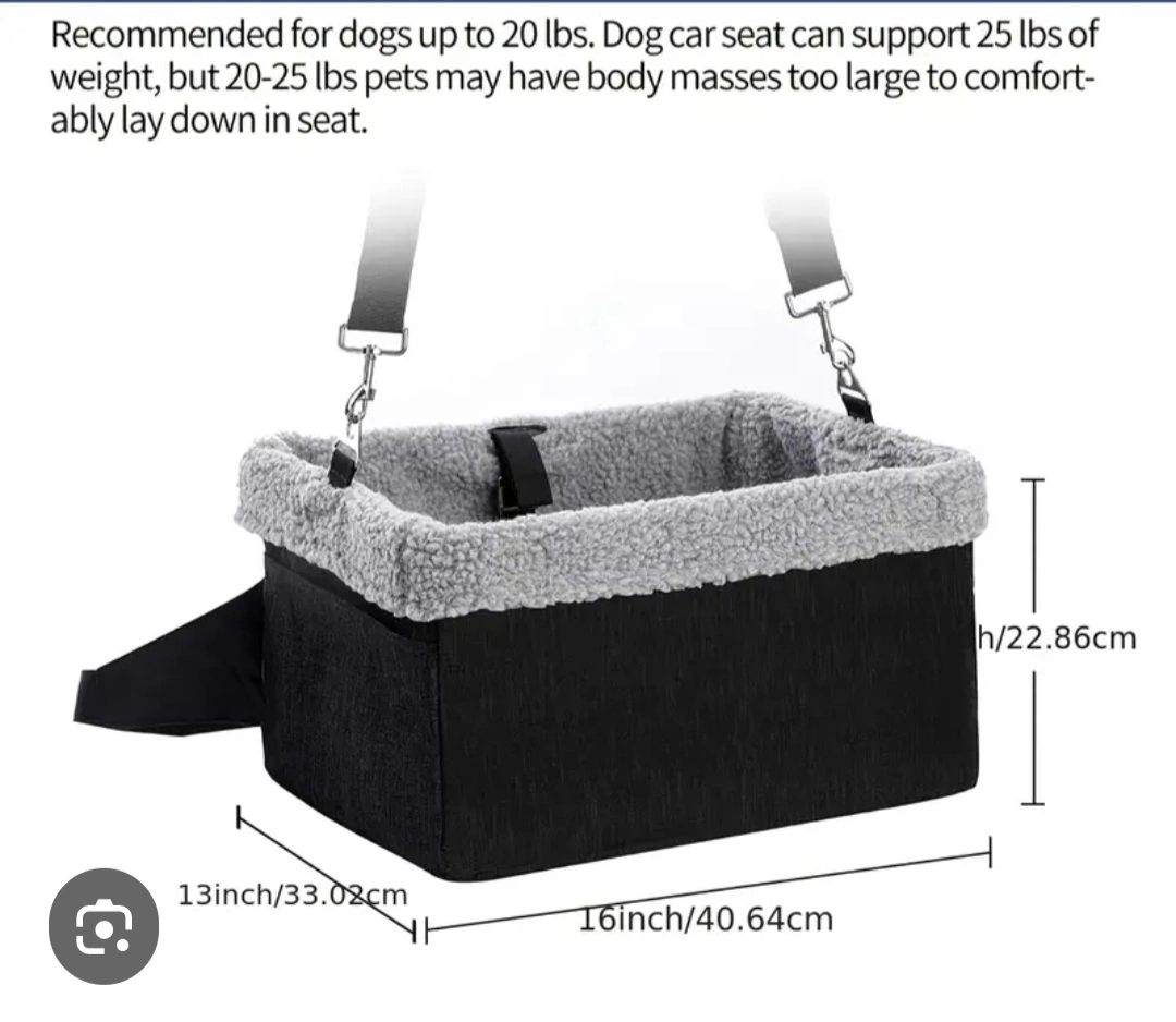 Keep your furry friend safe and comfy on car rides with this puppy car seat! It's perfect for small dogs or cats up to 20 lbs. The seat features a fluffy brim and a soft cushion for a cozy ride. It also has a side pocket for storing pet essentials and an adjustable safety leash to keep your pet secure. Can be installed in the front or back seat. Easy to fold and in brand new condition.