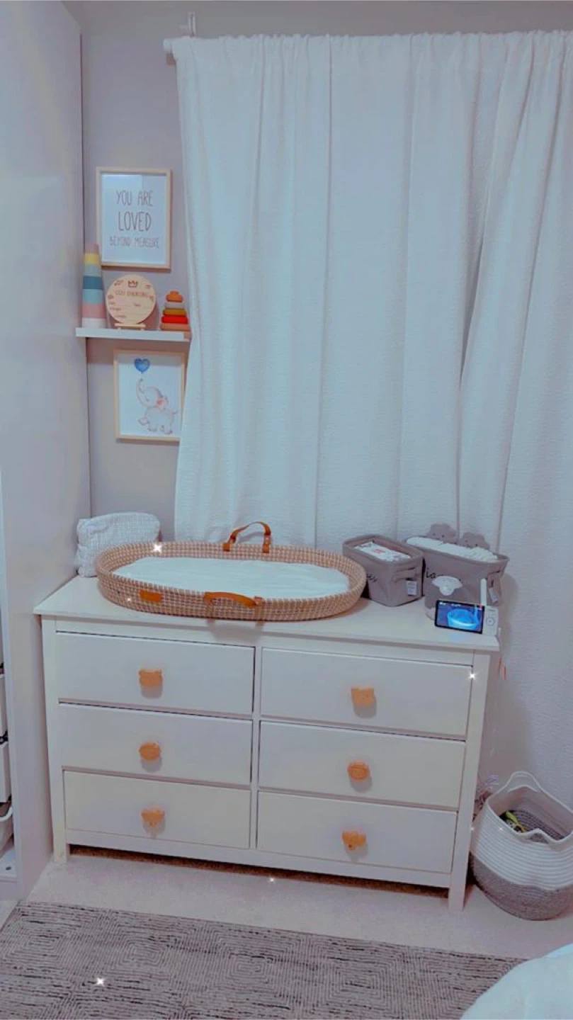 Selling a white changing table with drawers for storage. It's in good condition and a great addition to any nursery