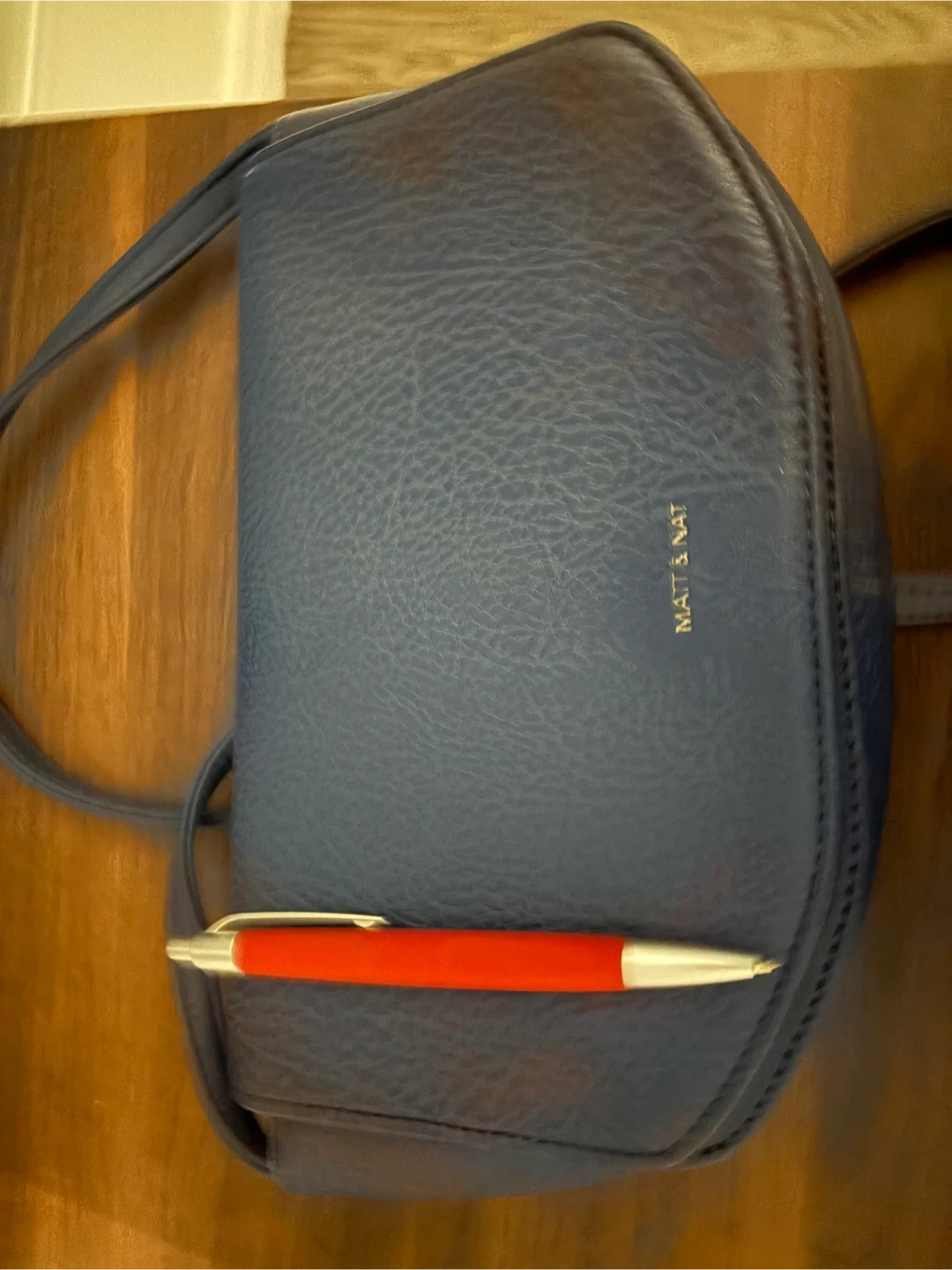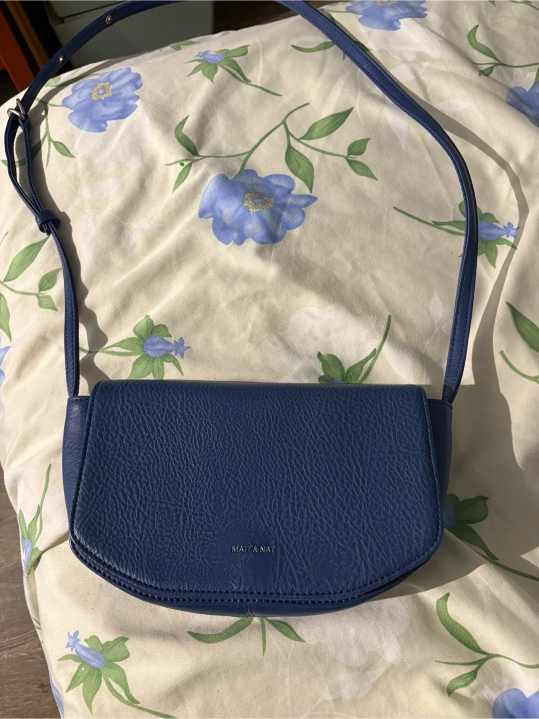 A stylish blue crossbody bag from Matt & Nat! It's in great condition and ready for a new home. Perfect for carrying your essentials while keeping your hands free