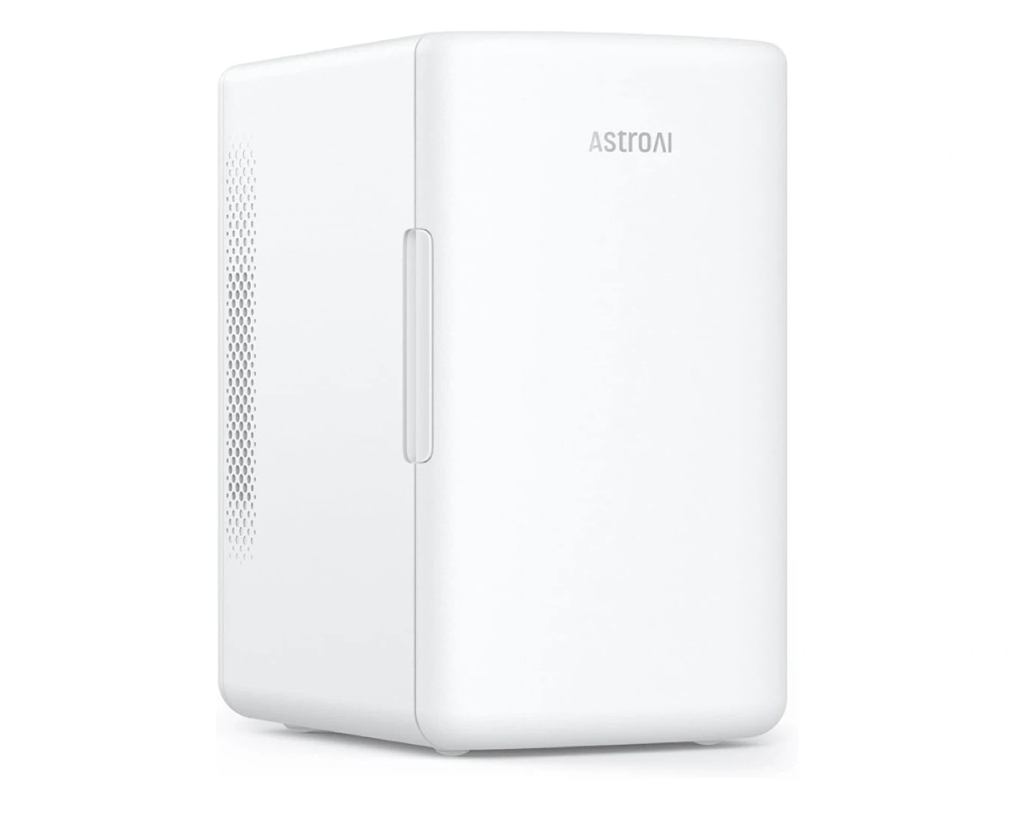 Used once AstroAI Mini Fridge 2.0 Gen, 6 Liter/8 Cans Makeup Skincare Fridge 110V AC/ 12V DC Portable Thermoelectric Cooler and Warmer Little Tiny Fridge for Bedroom, Cosmetics (Snow White) Practical and Stylish: The compact fridge has a futuristic aesthetic , plenty of features, and a low-noise system. The upgraded AstroAI 6L Skincare Fridge is the first choice for bedrooms, offices, dormitories, trips, and more. Halloween Suitable Capacity: Its upgraded interior readily stores up to 8*355ml cans or 4*20oz bottles of water. Inner dimensions are 5.67” x 5.28” x 10.08”. The detachable shelf lets you easily store beverages, cosmetics, and foods at varying heights. Warming and Cooling Functions: Cools up to 32-40℉(18-22℃) below ambient temperature, keeps warm up to 150°F (66°C). With upgraded technology like an enhanced refrigeration chip and improved insulation, the AstroAI mini fridge delivers superior temperature control and performance. NOTE: The refrigerator needs to be powered on to actively cool. In order to ensure efficient cooling, avoid frequently opening the doors. Home & Car Use: Includes 2 power cords, 1 AC and 1 DC. Connect the 110V AC power cord to any standard wall outlet for easy at-home use. For use on the go, connect the 12V DC power cord to a vehicle cigarette lighter. Make your trip more convenient! To ensure the safety of electricity, this product is only used in countries and regions with 110v voltage Intuitive Design: Unique silicone pads on the base prevent slippage, while the hidden hinges protect against scratches. This design makes the fridge easier to handle while protecting furniture and vehicles. NOTE: If the door doesn’t snap shut when closed, press the handle to full secure it. Off to College