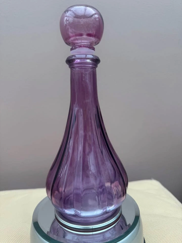 Beautiful pinky/purple glass decanter or perfume bottle collectable. Could also be used as a bud vase. See photos for measurements. Birchmount and Kingston Rd area.