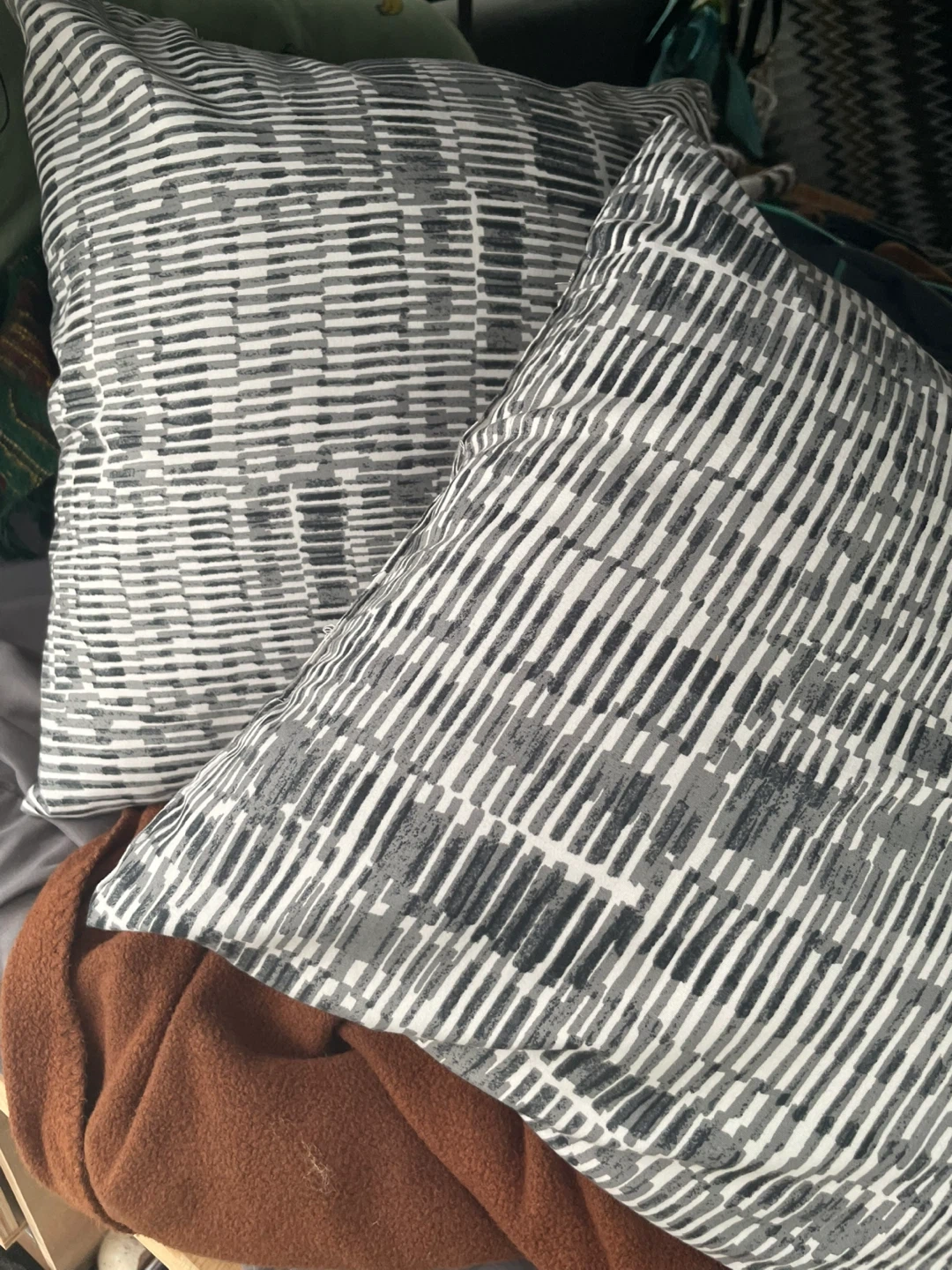 Selling a pair of throw pillows from IKEA. These super-soft cushions are made from 100% recycled polyester. The fabric has a brushed texture and a timeless grey pattern. Great condition. Both for $5!